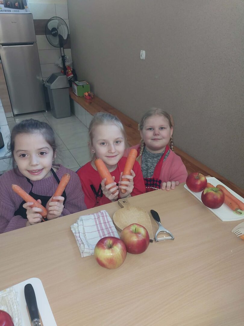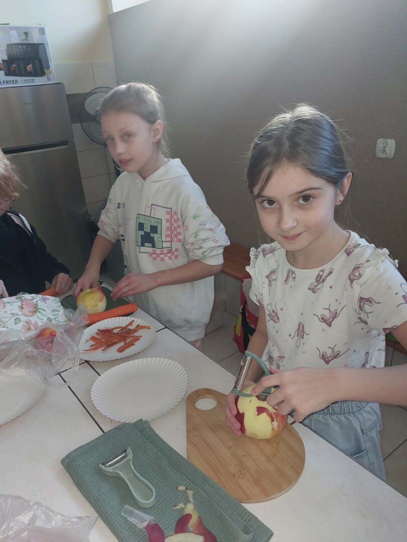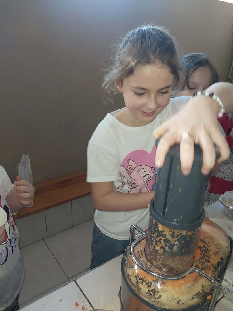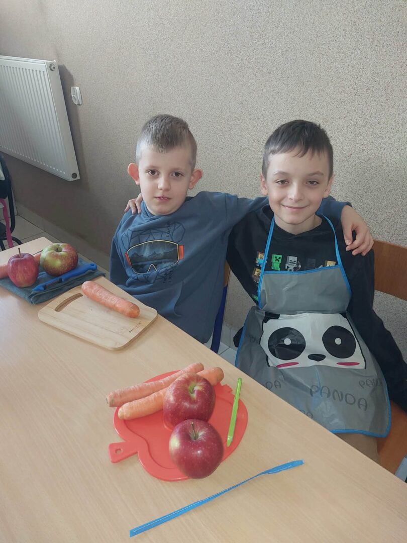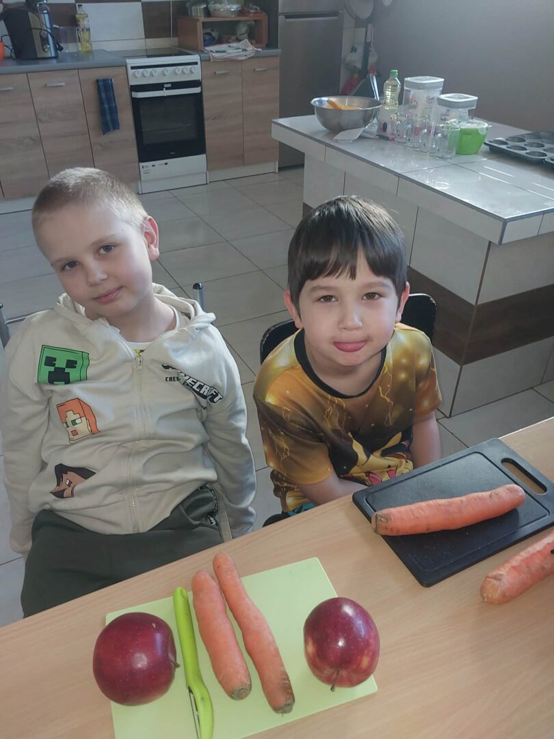 To jednak nie wszystko! 💪 Uczniowie samodzielnie wykonali także świeży sok z jabłek i marchewki – zdrowy, naturalny i pełen witamin. 🥕🍎🍹 Podczas pracy uczyli się zasad bezpieczeństwa, higieny oraz właściwego korzystania ze sprzętów kuchennych.