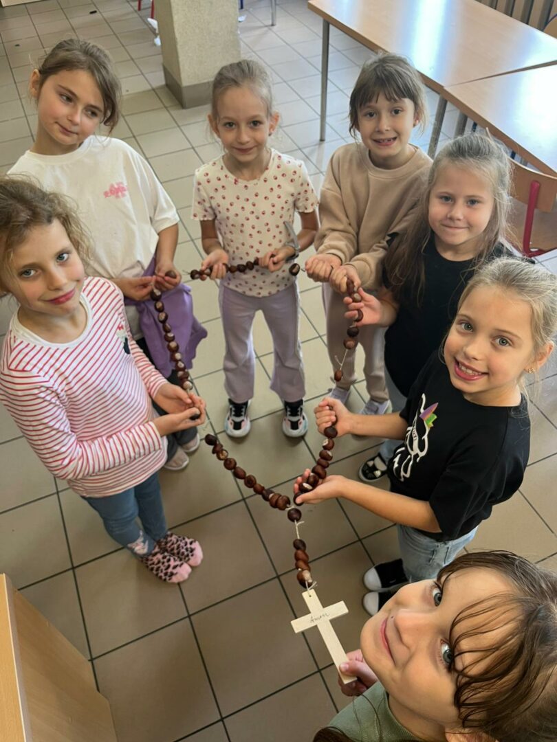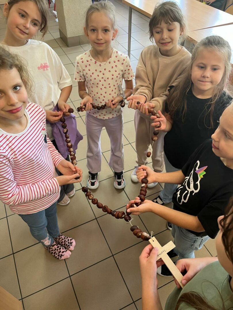 W święto Matki Bożej Różańcowej 120 uczniów wzięło udział w akcji Milion dzieci modli się na różańcu prosząc o jedność i pokój dla świata. Na szkolonej świetlicy dzieci przystąpiły do konkursu plastycznego pod tytułem Tajemnice Różańca Świętego.