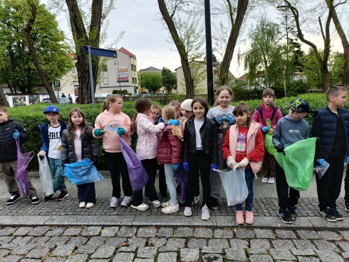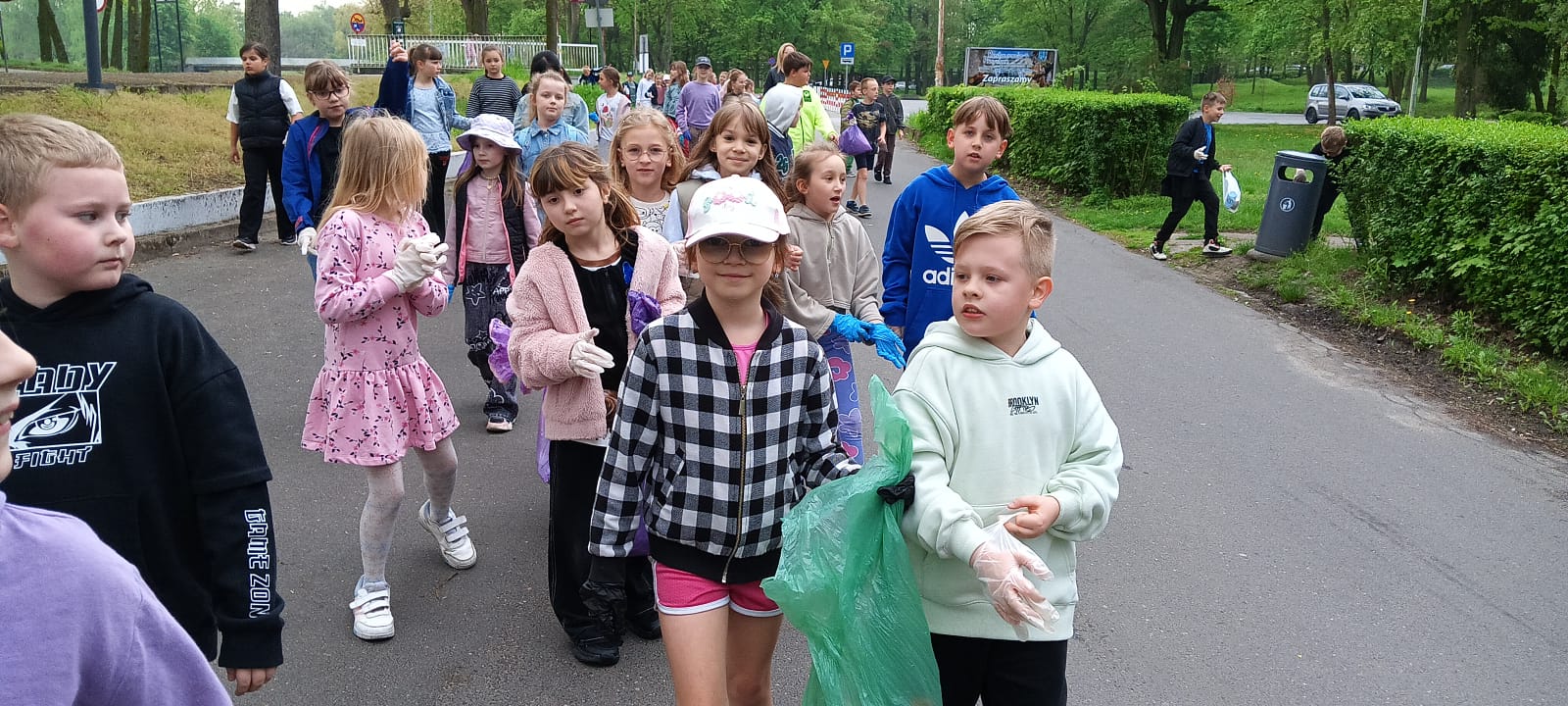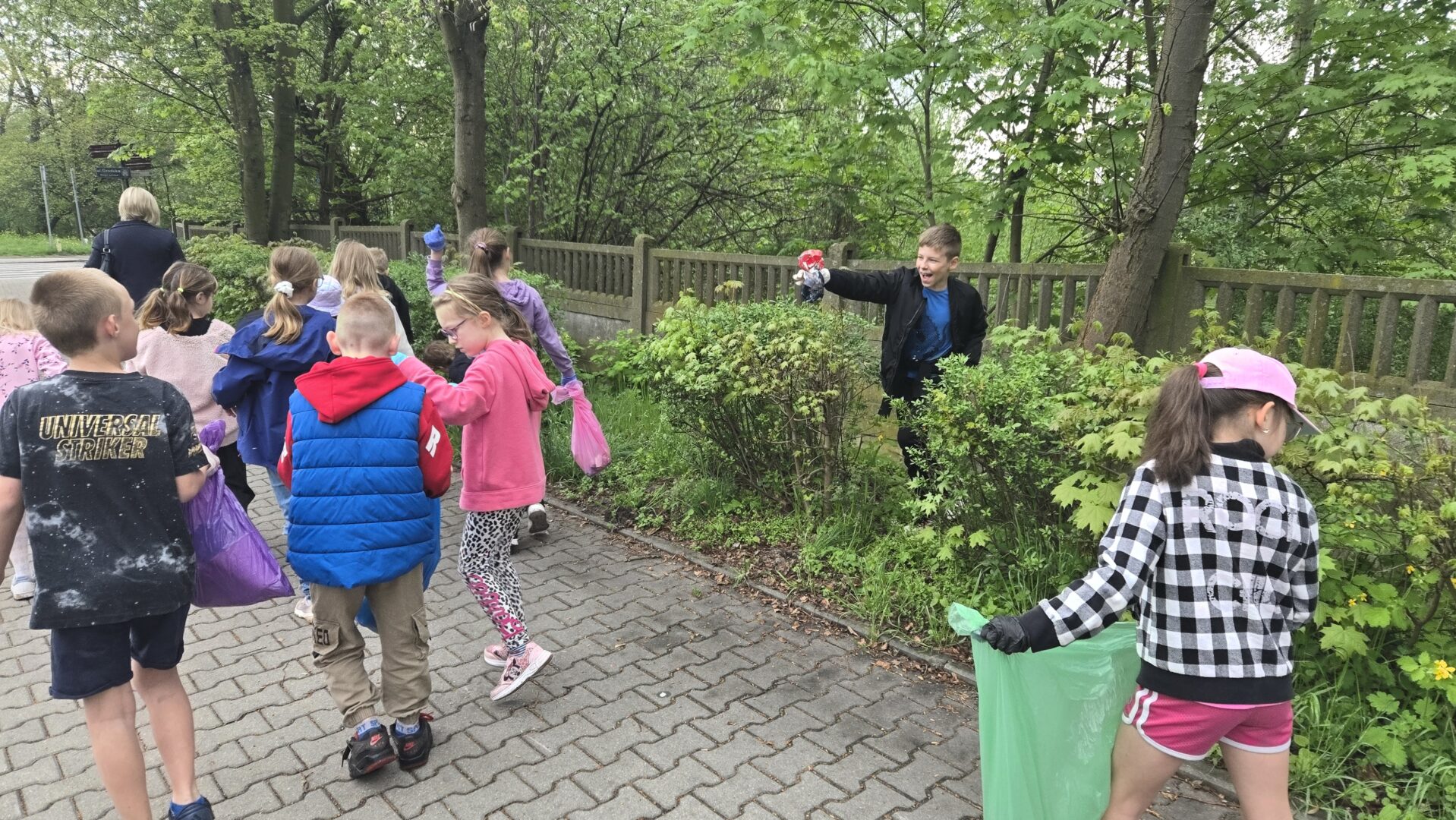 Zebrano kilkanaście worków śmieci – głównie papierów, plastików oraz butelek. Najwięcej odpadów znajdowało się w trudno dostępnych miejscach, takich jak krzaki czy obrzeża ścieżek spacerowych. Uczniowie wykazali się dużą odpowiedzialnością i współpracą, co zasługuje na szczególne uznanie.
