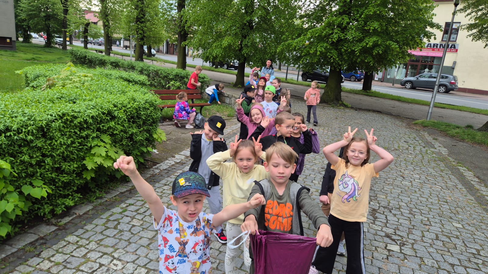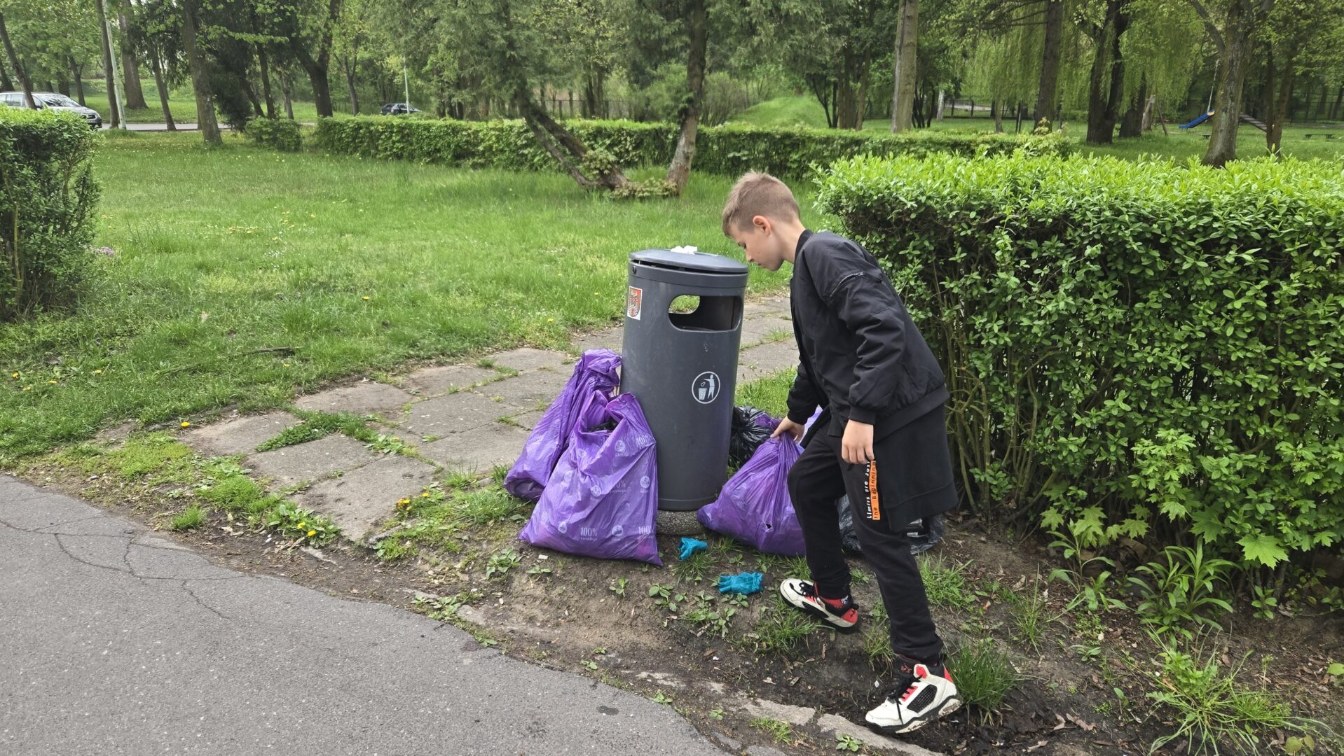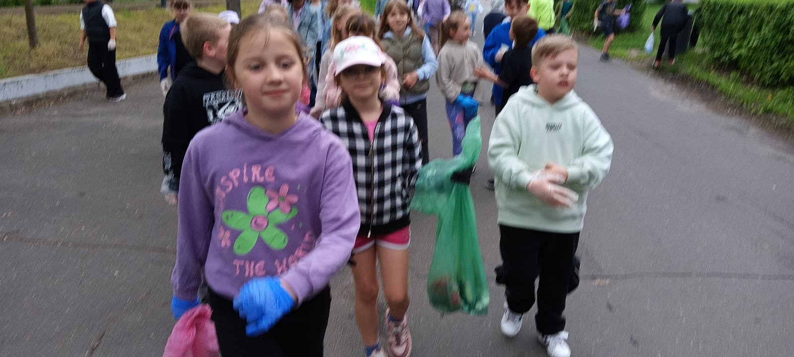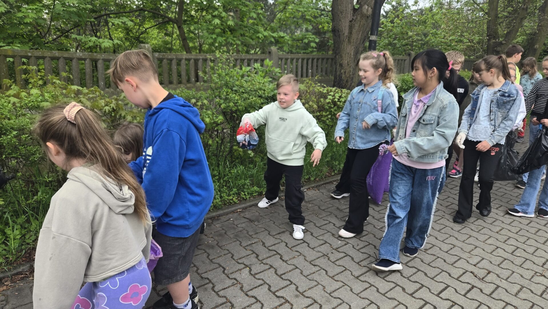 Zebrano kilkanaście worków śmieci – głównie papierów, plastików oraz butelek. Najwięcej odpadów znajdowało się w trudno dostępnych miejscach, takich jak krzaki czy obrzeża ścieżek spacerowych. Uczniowie wykazali się dużą odpowiedzialnością i współpracą, co zasługuje na szczególne uznanie.