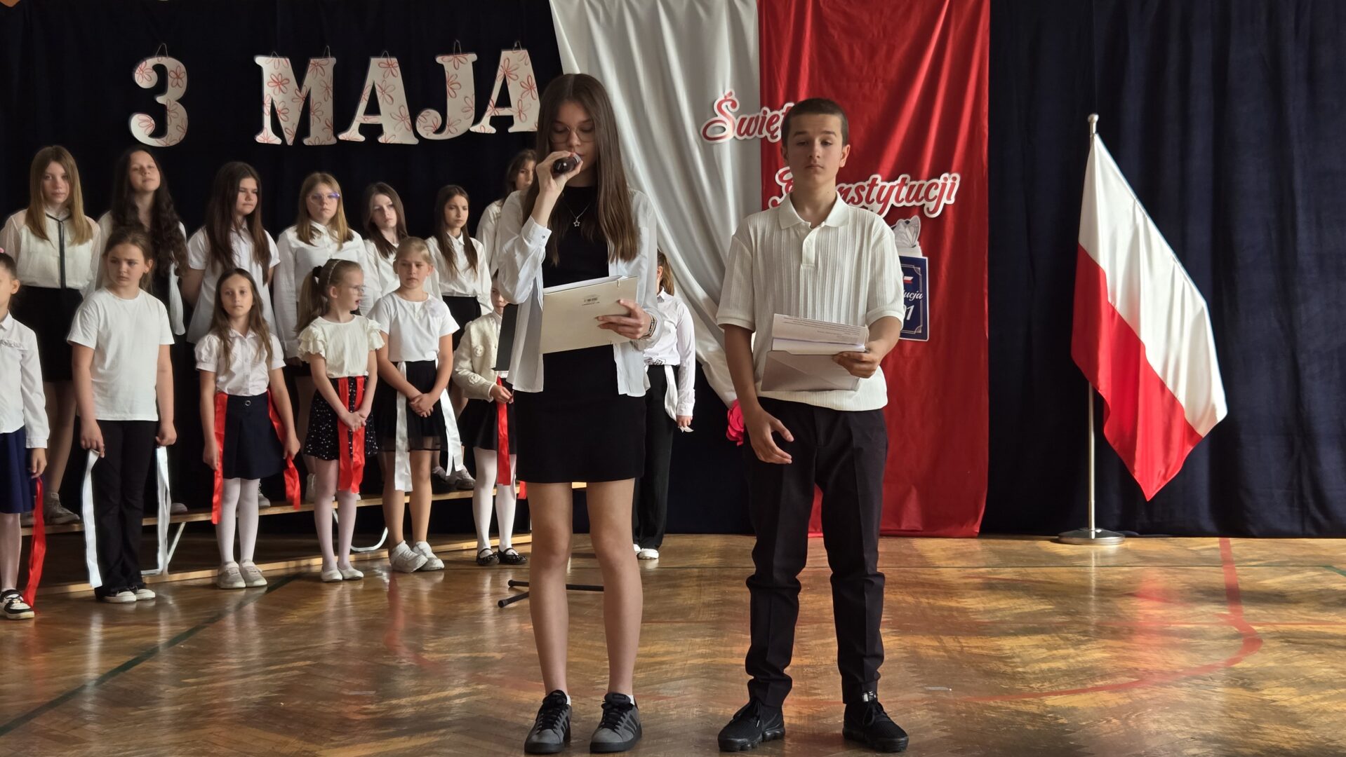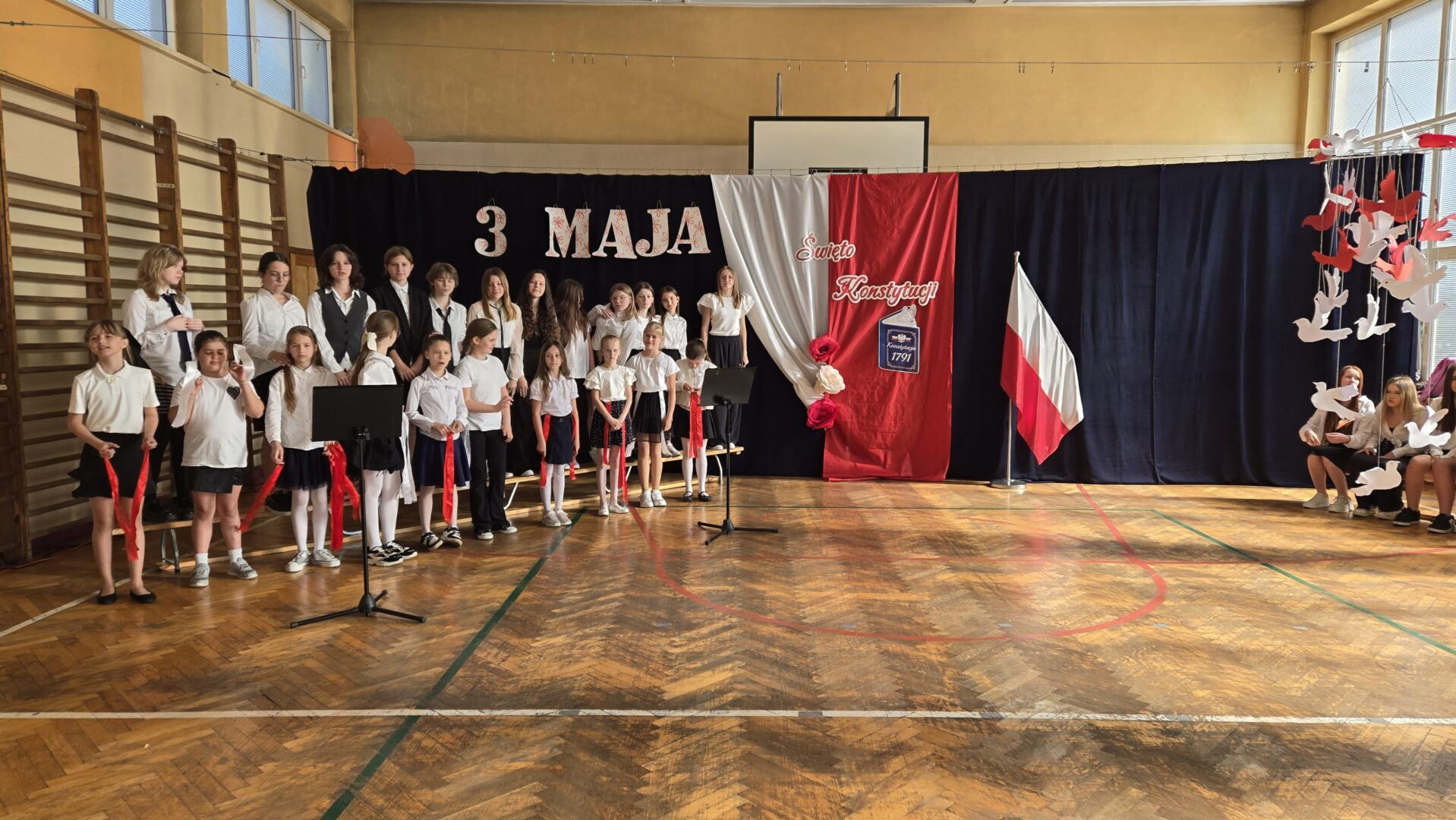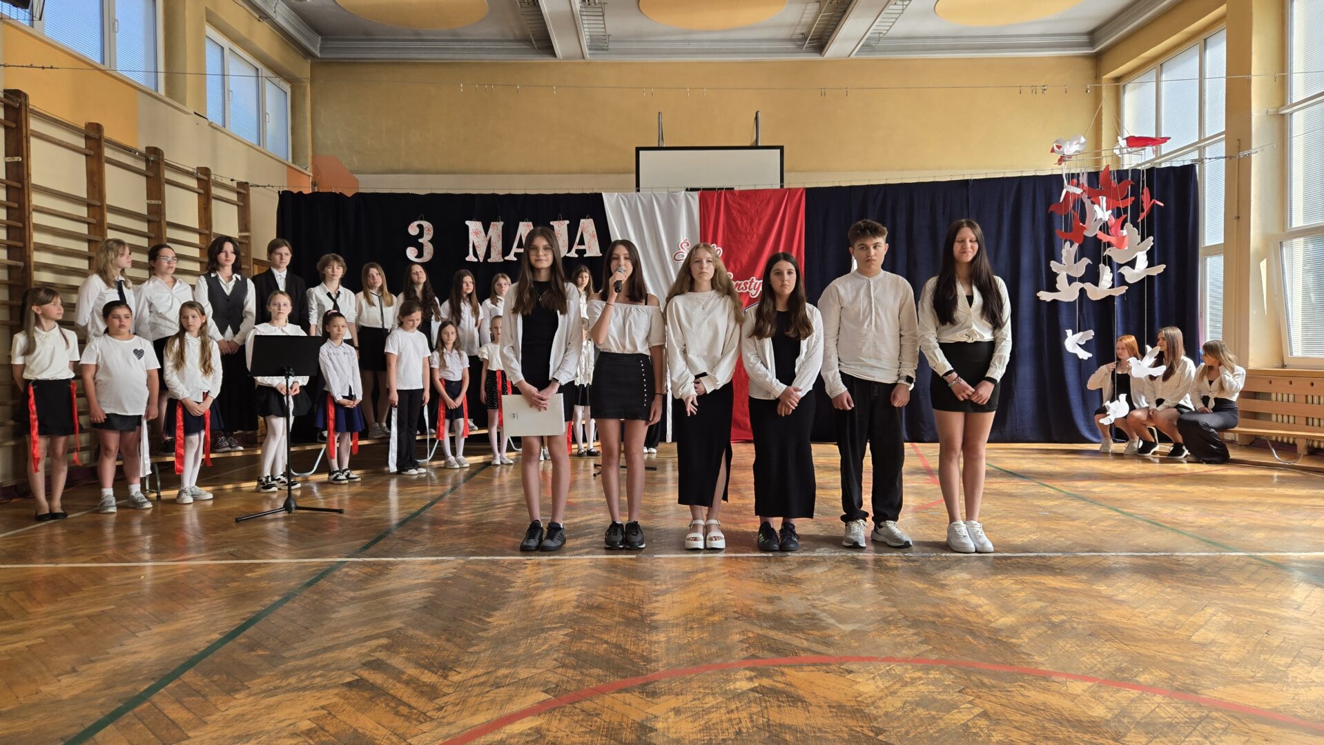 Dziś w naszej szkole uczciliśmy pamięć o jednym z najważniejszych wydarzeń w historii Polski – uchwaleniu Konstytucji 3 maja. Z tej okazji uczniowie klas 3a,3b, 6a, 6b i 7a, 7c przygotowali dla reszty społeczności szkolnej niezapomniany apel, który przeniósł nas w tamte historyczne chwile.