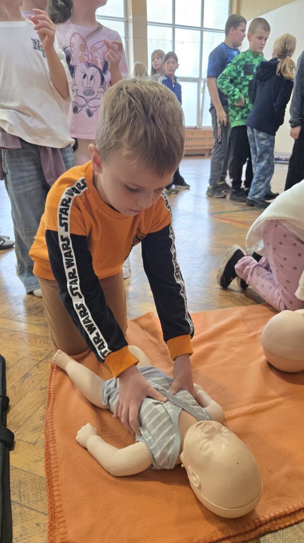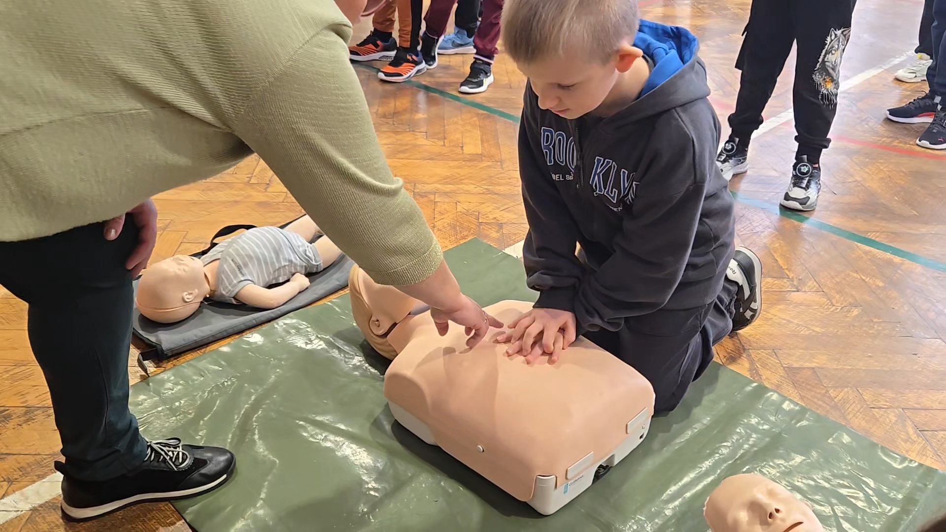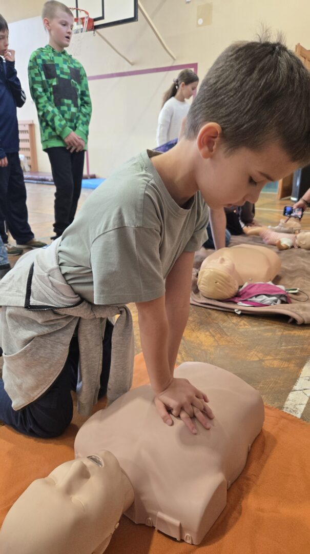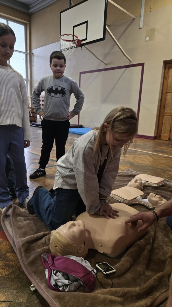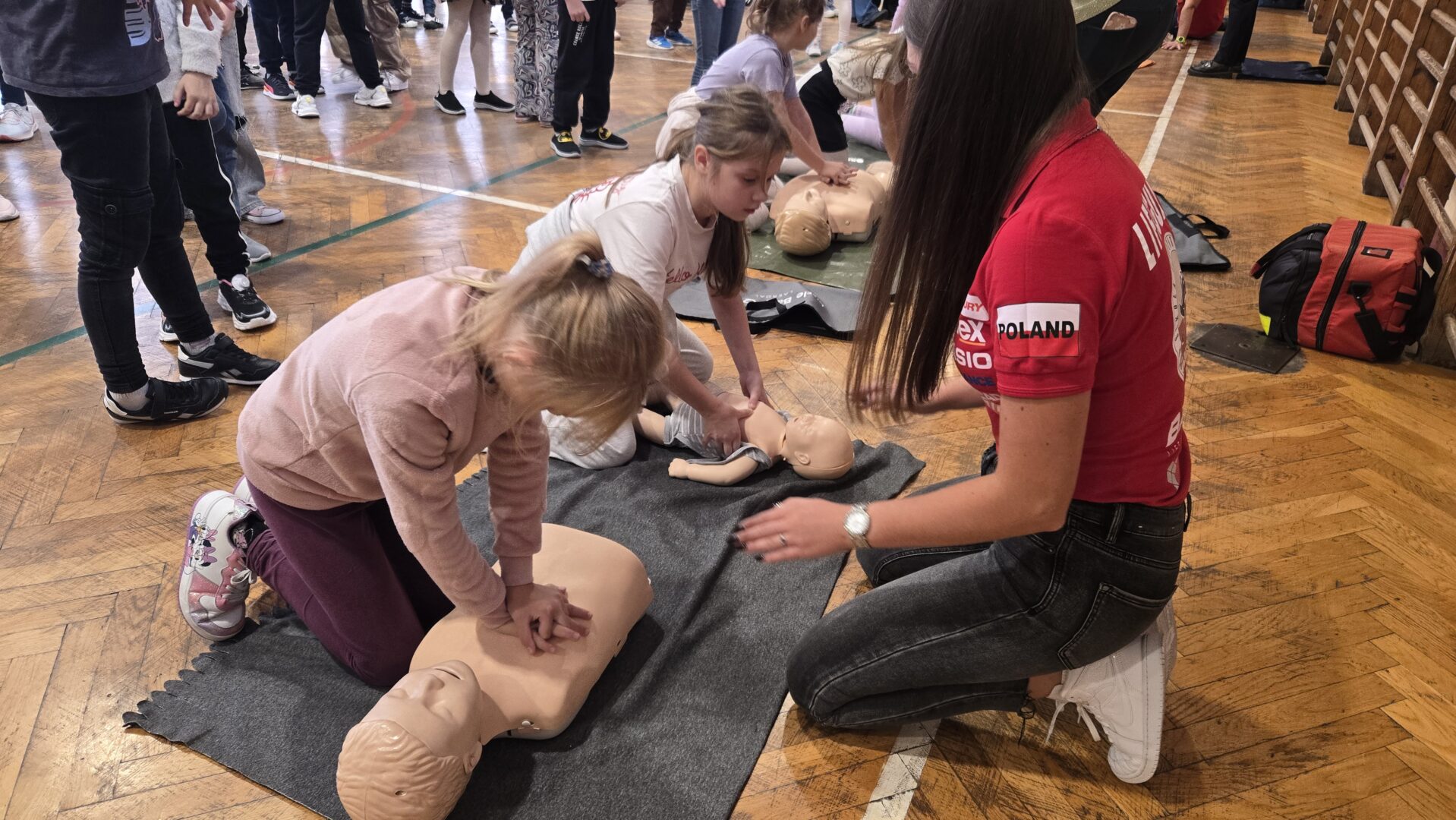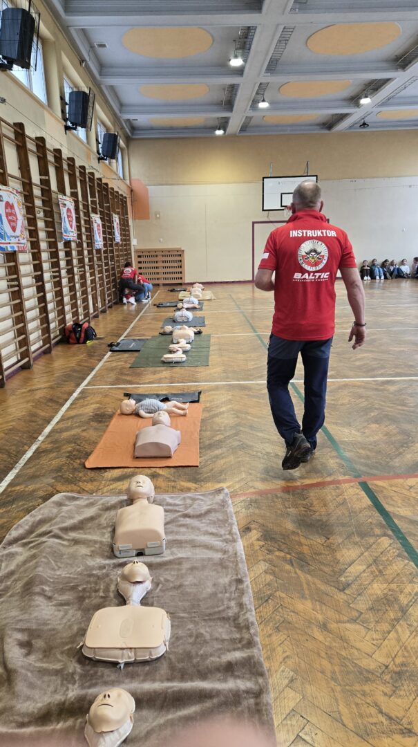 Akcję w naszej szkole poprowadziła firma Megalodon z panem Witoldem Gotkowiczem na czele. Trzech doświadczonych instruktorów szkoliło uczniów klas 1–5, którzy z ogromnym zaangażowaniem uczyli się podstawowych zasad udzielania pierwszej pomocy.