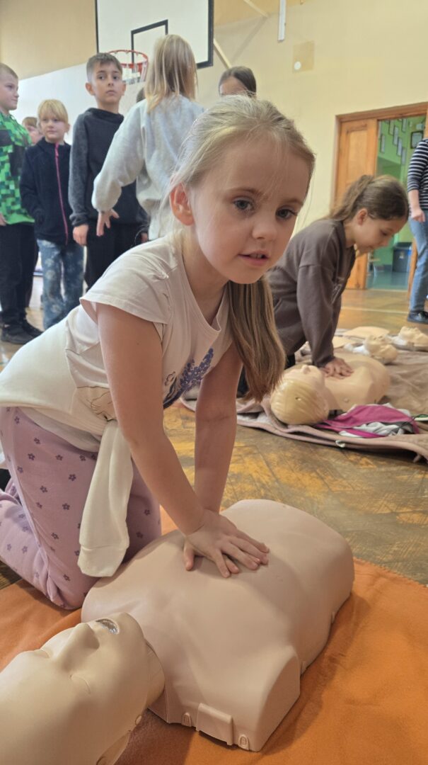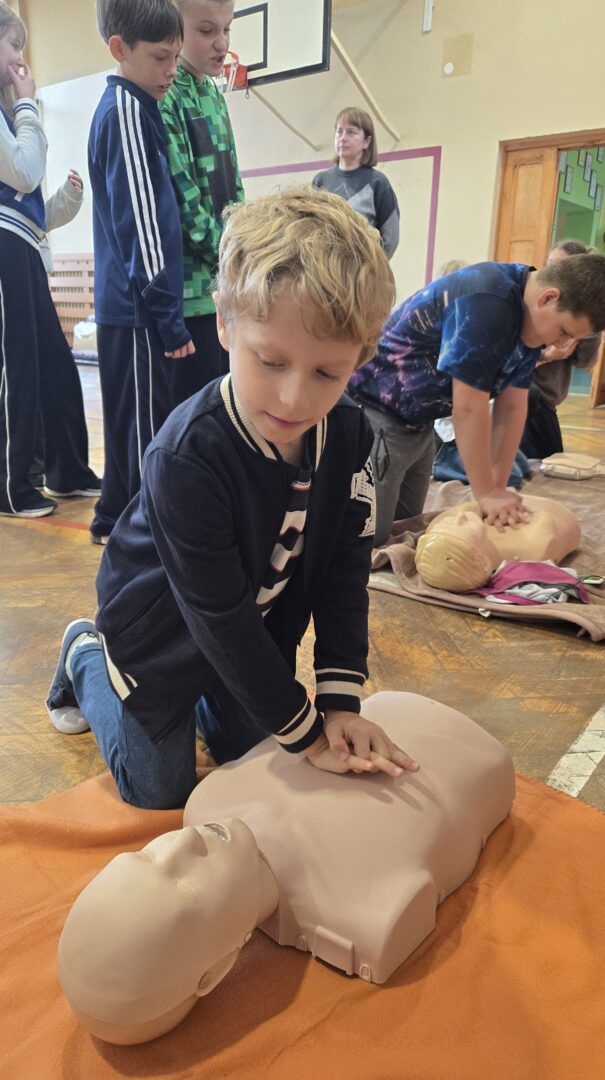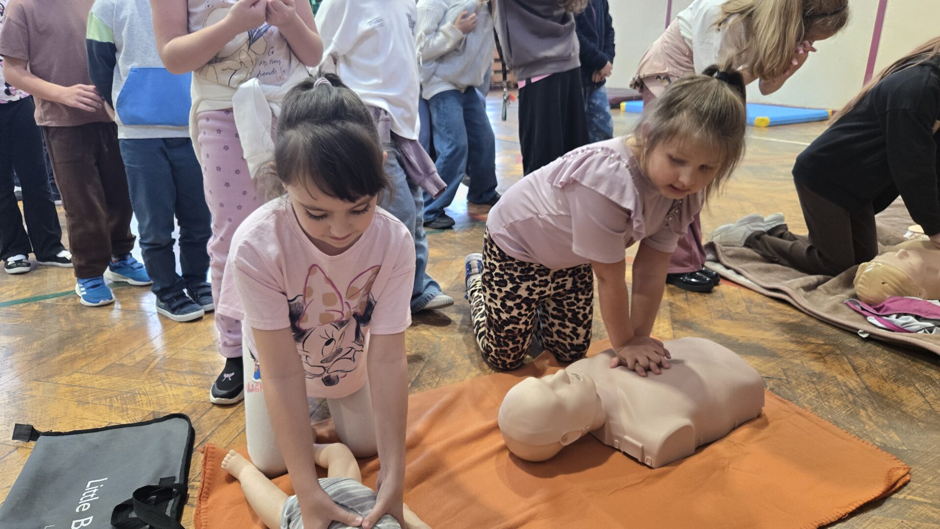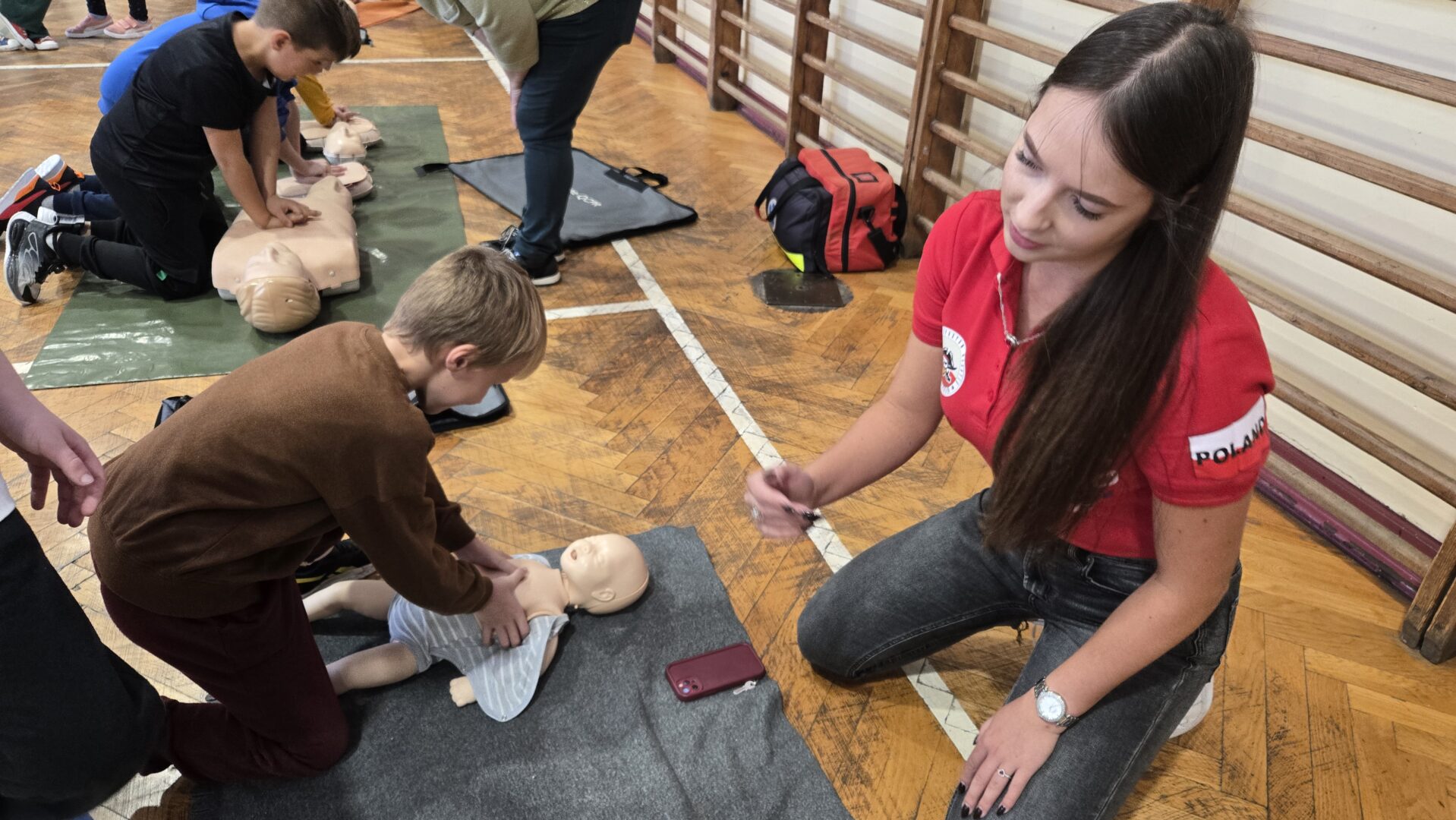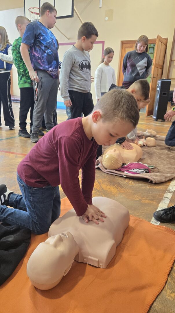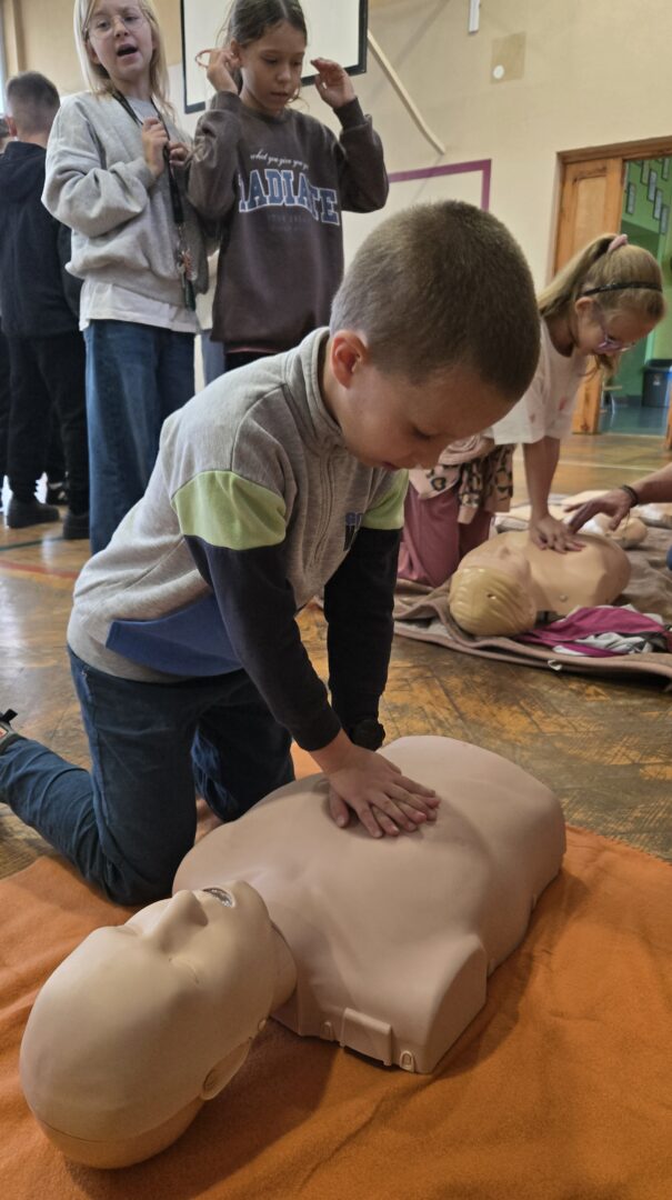 Akcję w naszej szkole poprowadziła firma Megalodon z panem Witoldem Gotkowiczem na czele. Trzech doświadczonych instruktorów szkoliło uczniów klas 1–5, którzy z ogromnym zaangażowaniem uczyli się podstawowych zasad udzielania pierwszej pomocy.