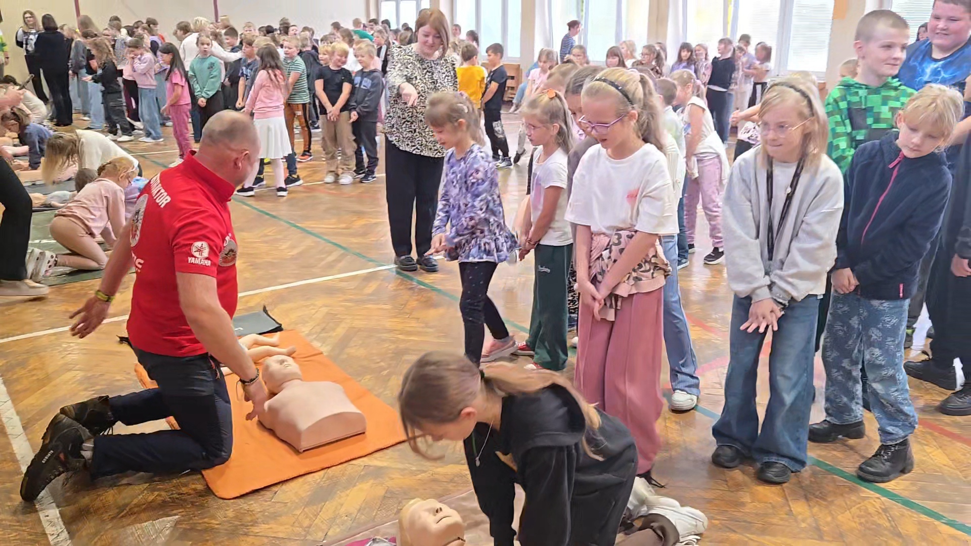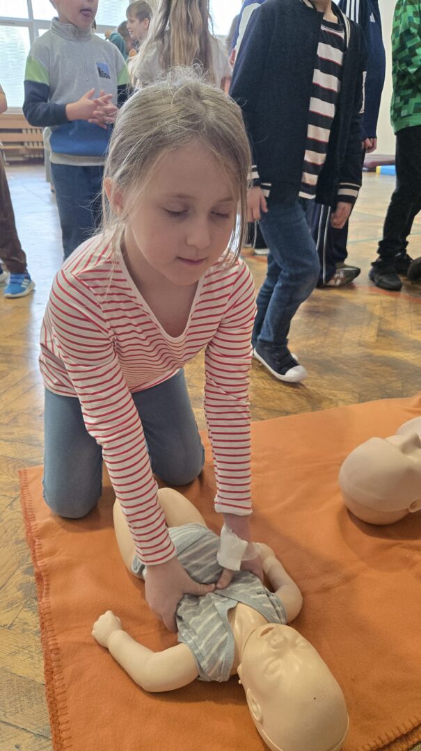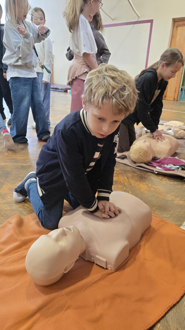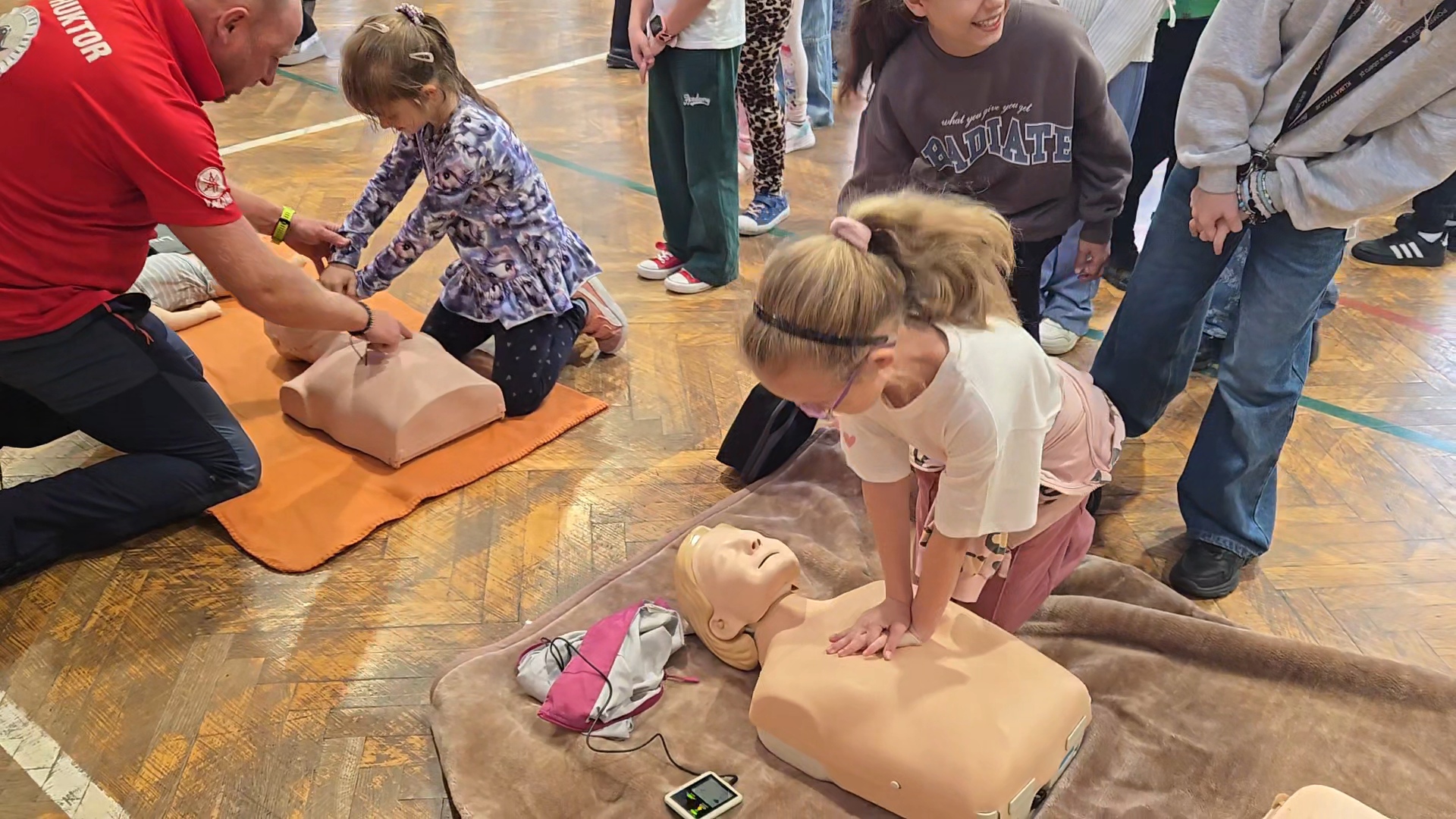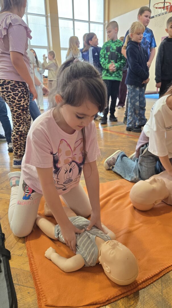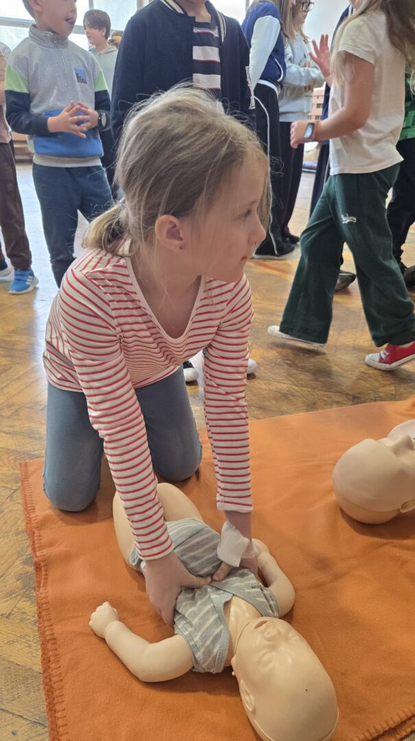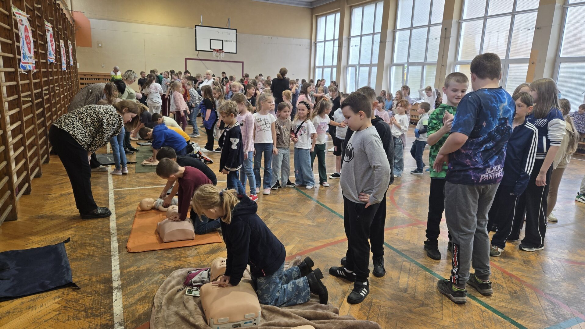Akcję w naszej szkole poprowadziła firma Megalodon z panem Witoldem Gotkowiczem na czele. Trzech doświadczonych instruktorów szkoliło uczniów klas 1–5, którzy z ogromnym zaangażowaniem uczyli się podstawowych zasad udzielania pierwszej pomocy.