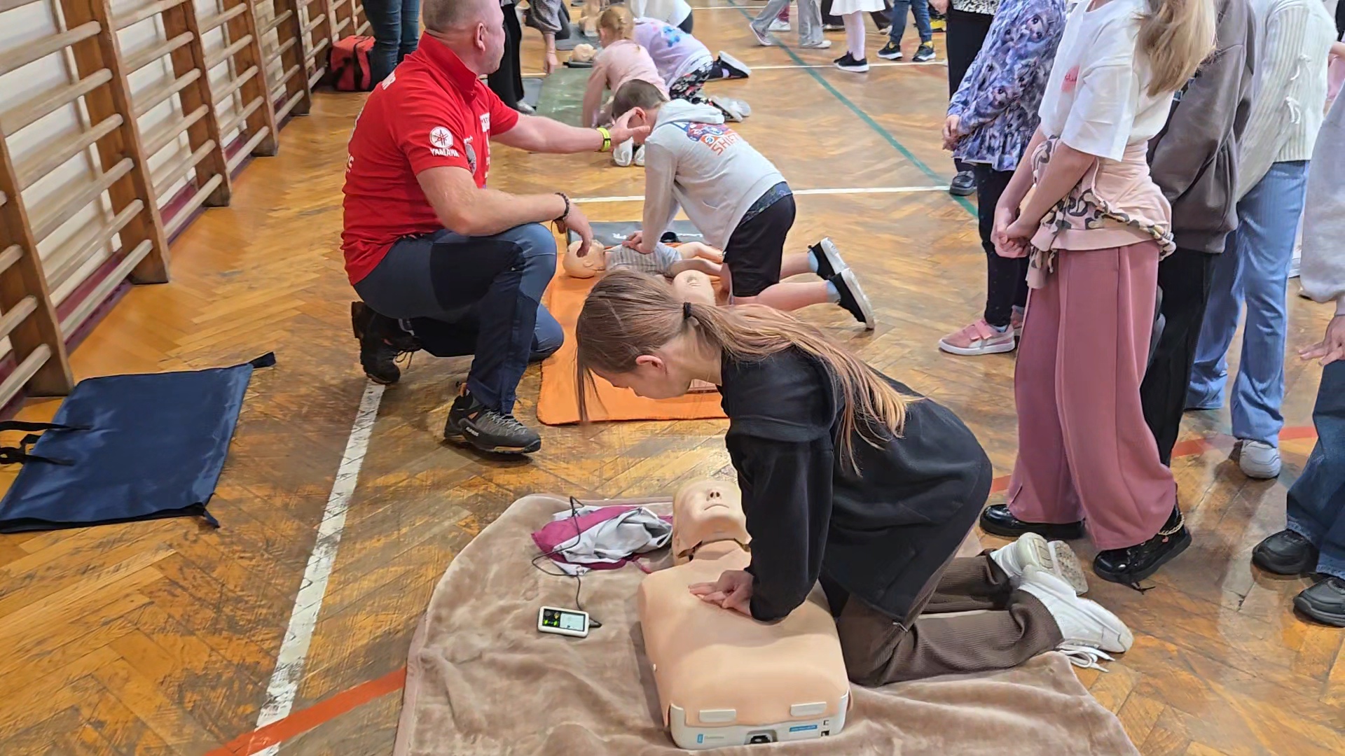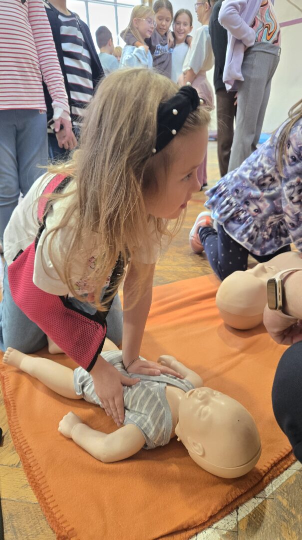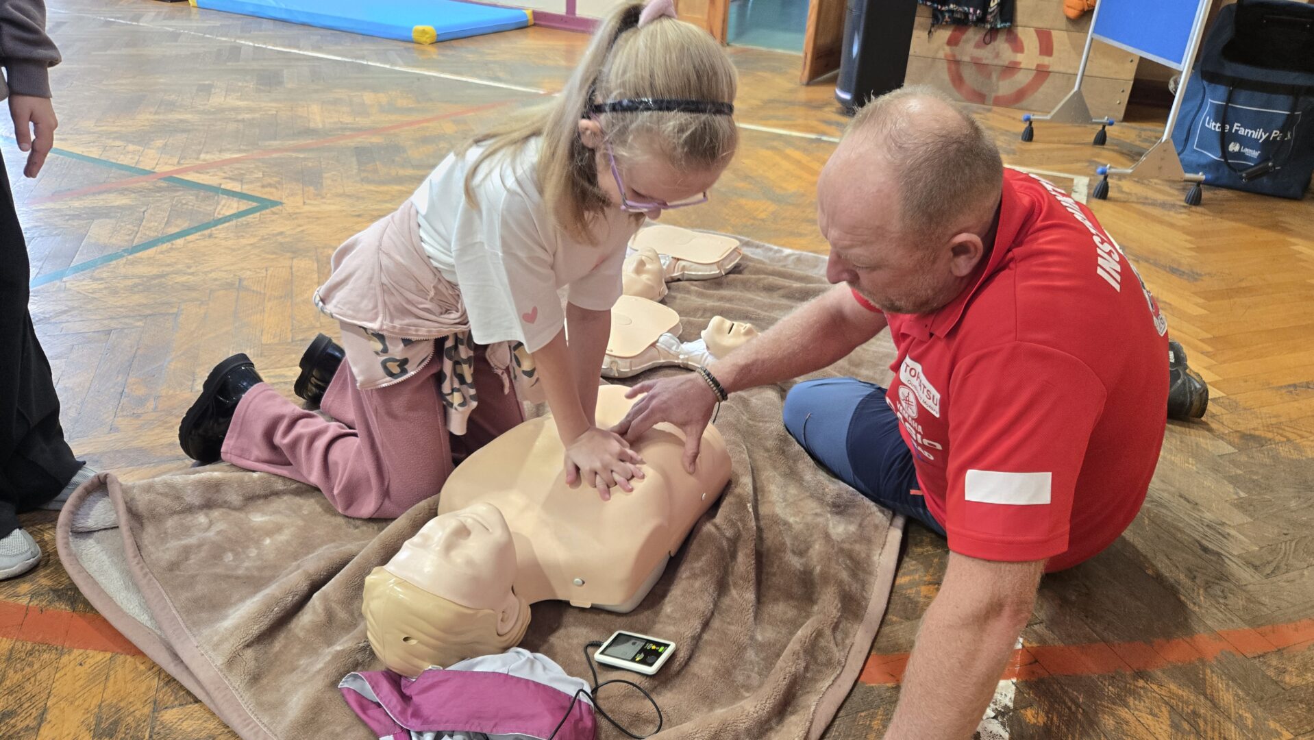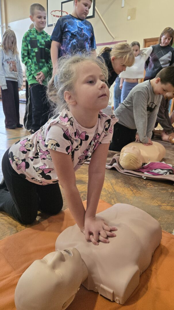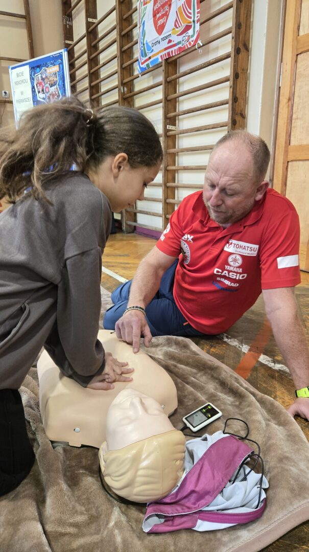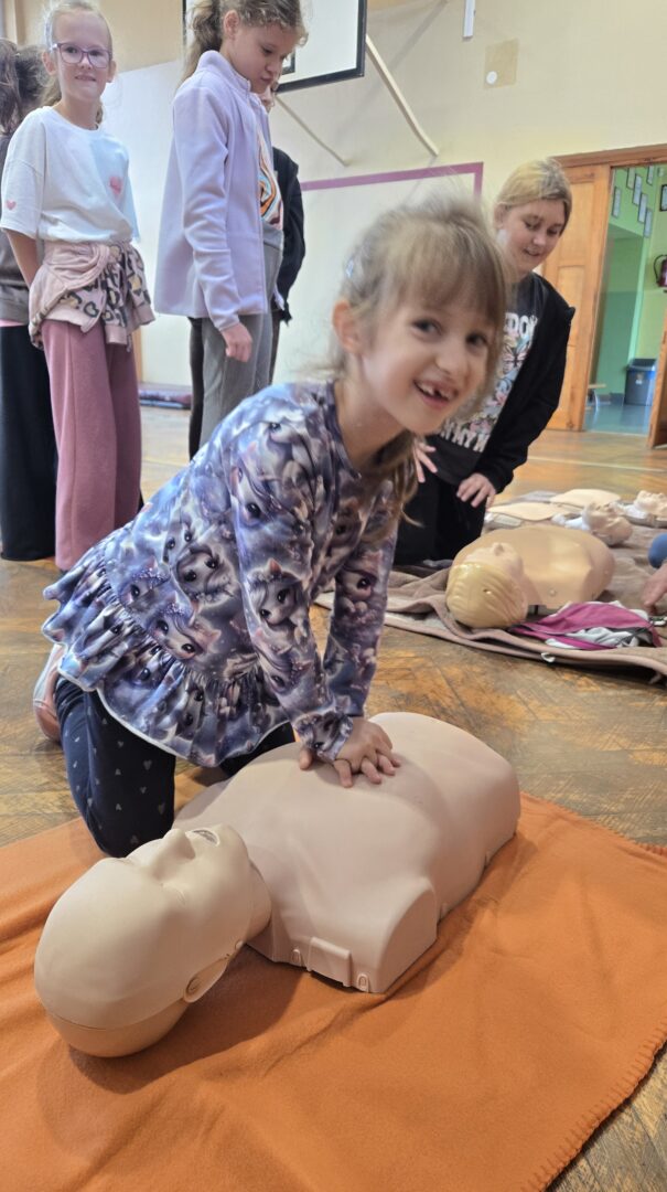 Akcję w naszej szkole poprowadziła firma Megalodon z panem Witoldem Gotkowiczem na czele. Trzech doświadczonych instruktorów szkoliło uczniów klas 1–5, którzy z ogromnym zaangażowaniem uczyli się podstawowych zasad udzielania pierwszej pomocy.