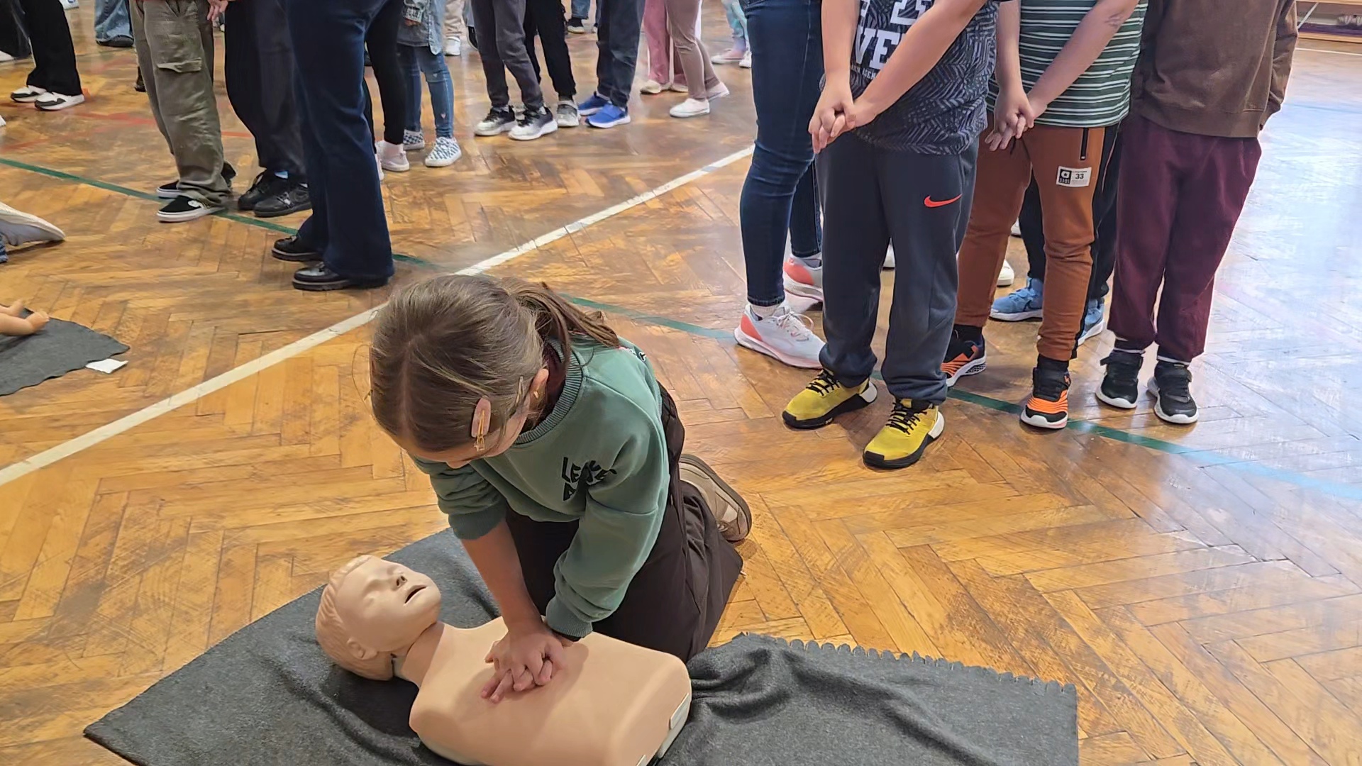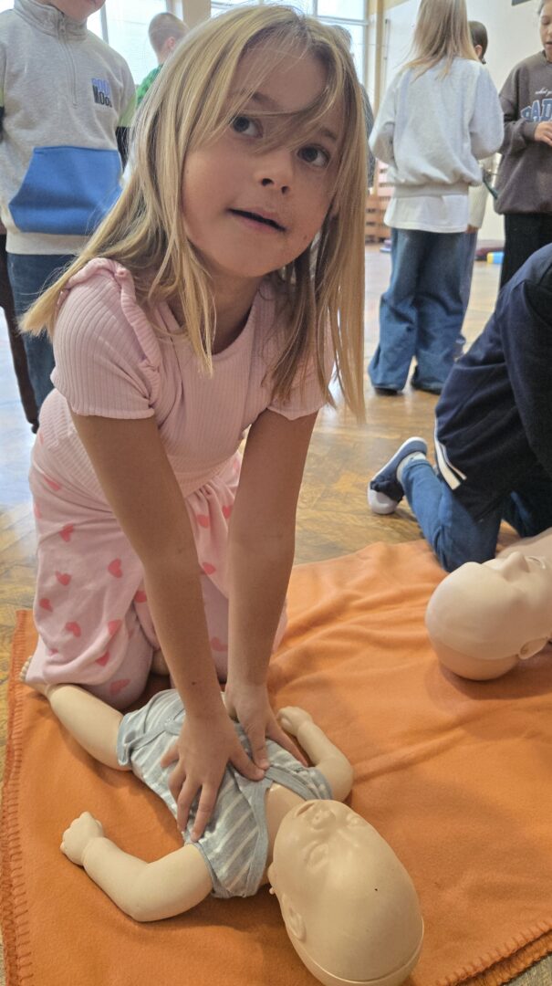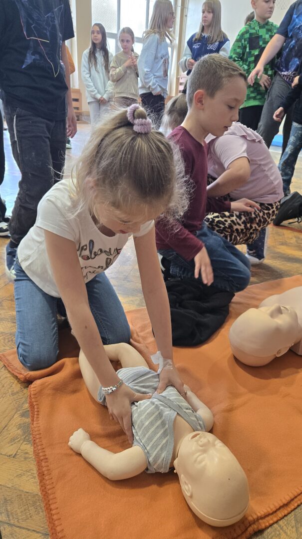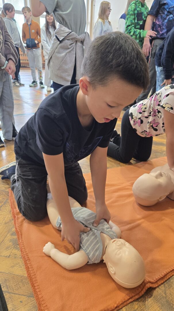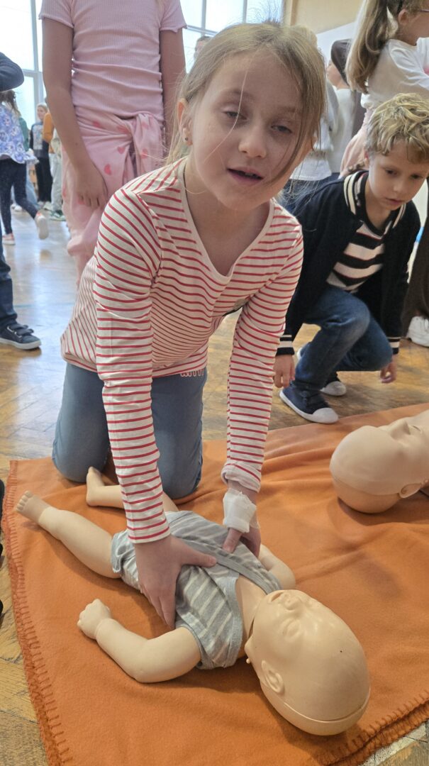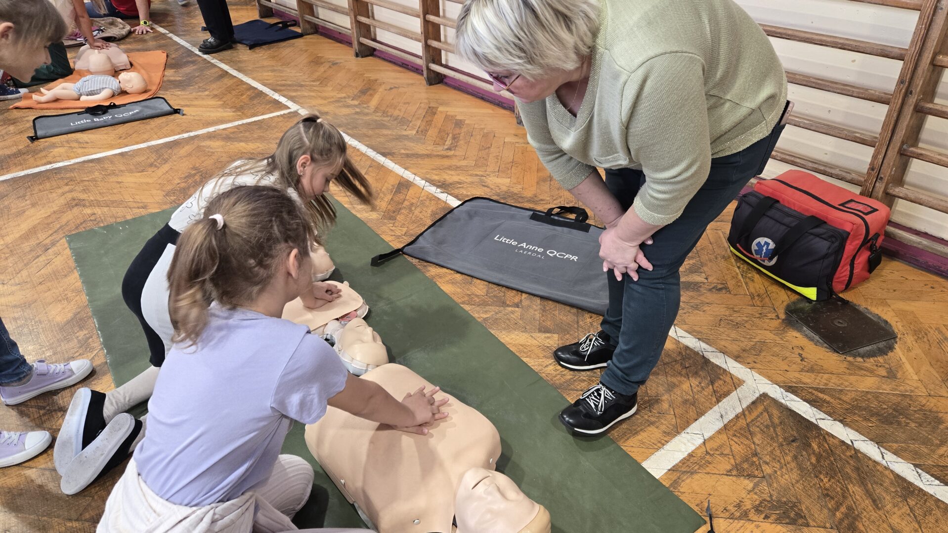 Akcję w naszej szkole poprowadziła firma Megalodon z panem Witoldem Gotkowiczem na czele. Trzech doświadczonych instruktorów szkoliło uczniów klas 1–5, którzy z ogromnym zaangażowaniem uczyli się podstawowych zasad udzielania pierwszej pomocy.