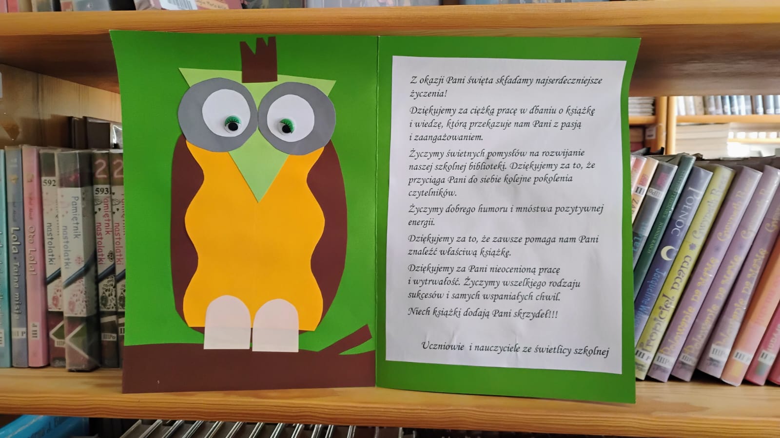 Z okazji przypadającego dziś święta, wszystkim bibliotekarzom, a w szczególności naszej Pani Izabeli Szymańskiej, składamy najserdeczniejsze podziękowania za pracę na rzecz rozwoju kultury i edukacji w naszym środowisku szkolnym. Pani wkład w upowszechnianie naszej wiedzy jest nieoceniony. Dziękujemy za serdeczność, zaangażowanie i profesjonalizm. Te cechy powodują, że nasza biblioteka jest stałym punktem na mapie szkoły, który każdego dnia odwiedzamy.