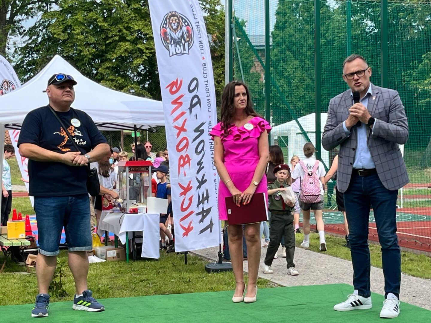 W sobotę, 31 maja, w naszej szkole odbył się niezwykły festyn rodzinny „Sobota bez logowania”, zorganizowany przez Radę Rodziców. Wydarzenie rozpoczęło się uroczystym otwarciem, którego dokonali: dyrektor szkoły Piotr Bakowicz, prezydent Miasta Sieradza Paweł Osiewała oraz przewodnicząca Rady Rodziców Ewa Chmielewska.