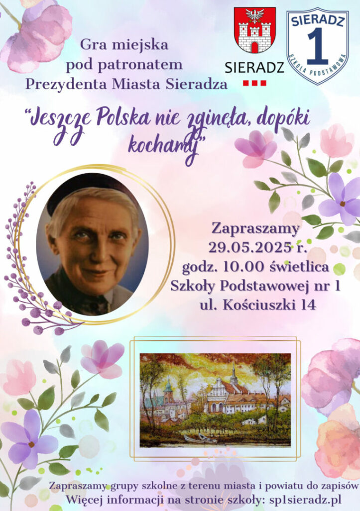 Zapraszamy grupy szkolne ze szkół sieradzkich oraz okolicznych do udziału w organizowanej przez naszą szkołę pod patronatem Prezydenta Miasta Sieradza grze miejskiej o patronce miasta Sieradza. Gra odbędzie się 29 maja 2025 r. o godz. 10.00.