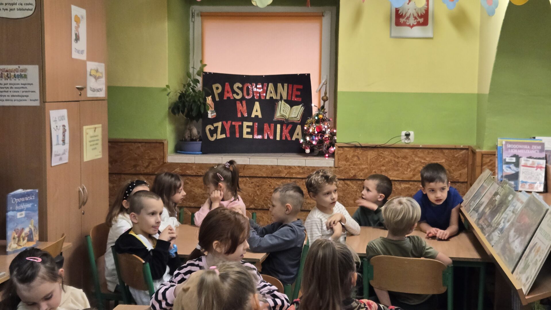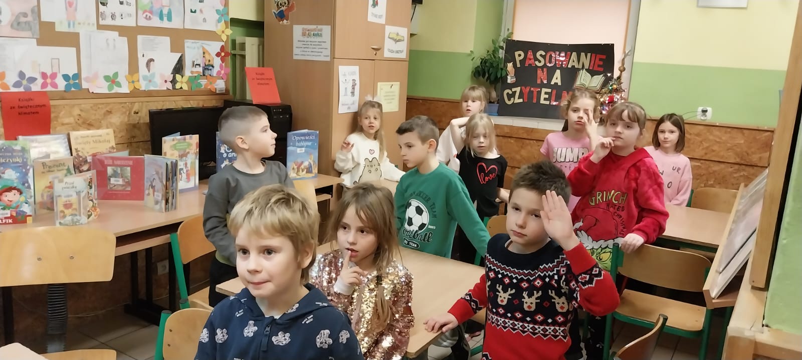 Dzisiaj uczniowie klas 1a i 1b wzięli udział w uroczystym pasowaniu na czytelnika