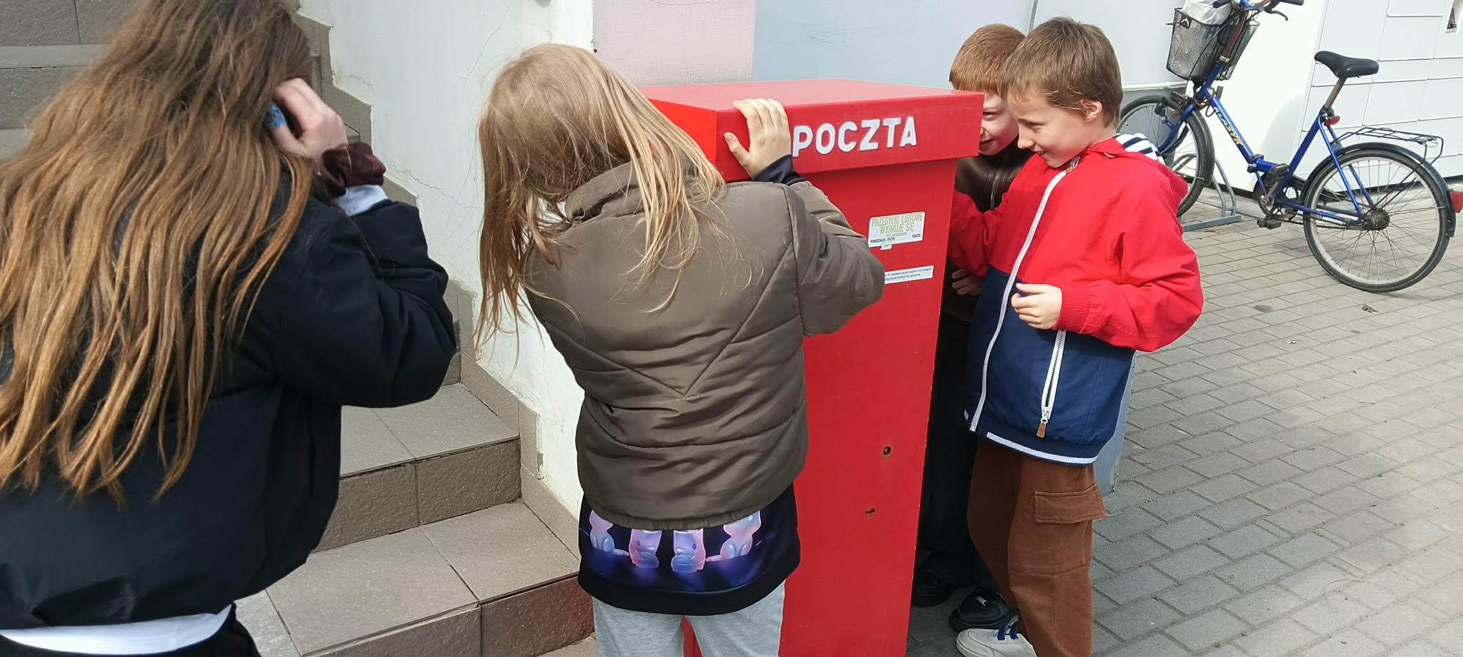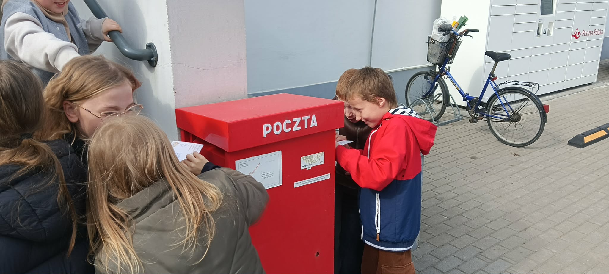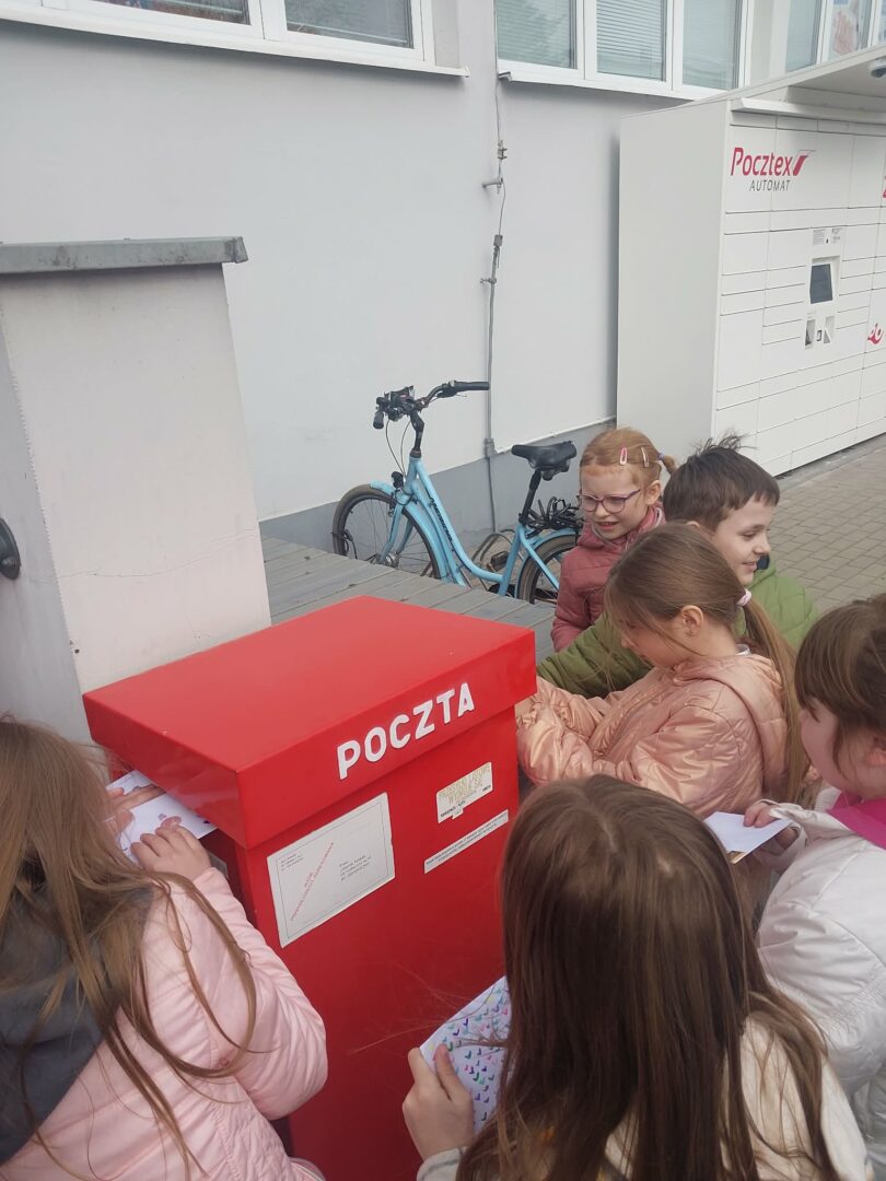 Podczas wizyty uczniowie mieli także okazję poznać pracę pań pracujących na poczcie 👩‍💼 oraz dowiedzieć się, jak wygląda droga listu do adresata 📦➡️📭