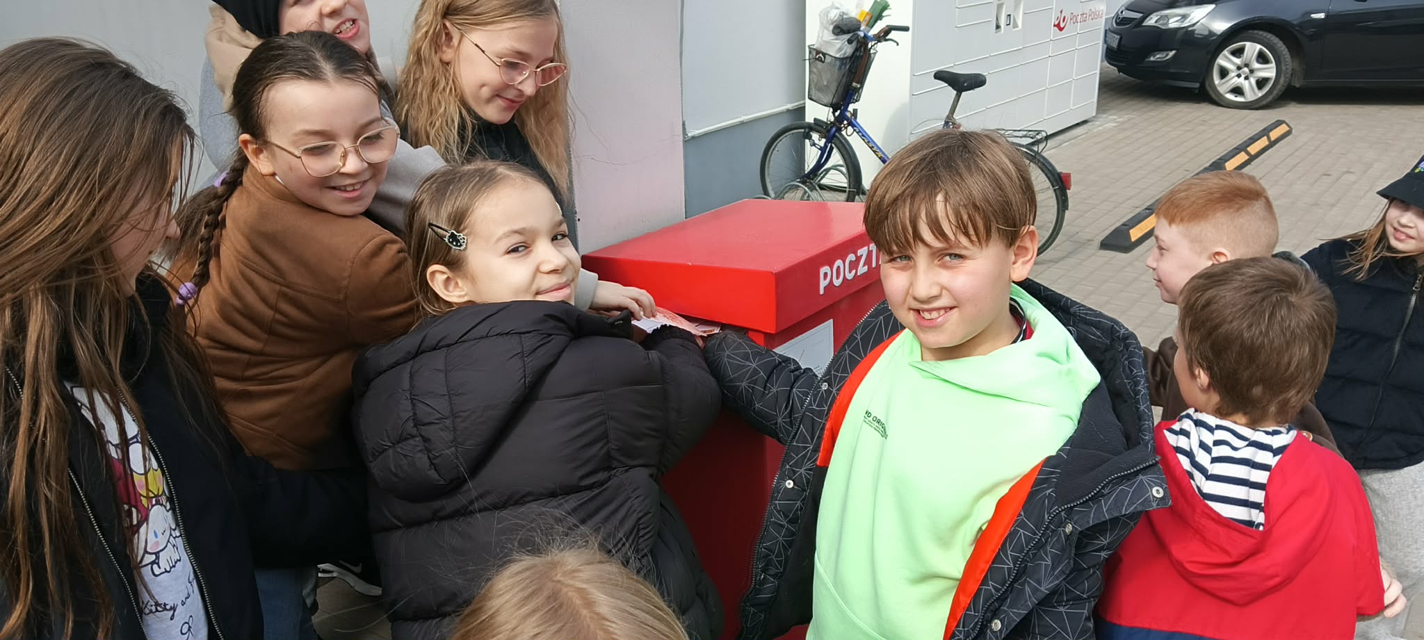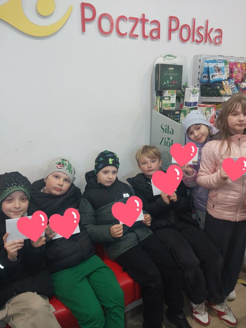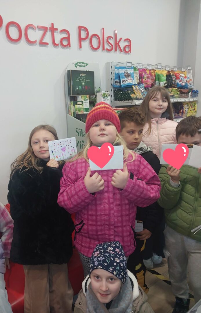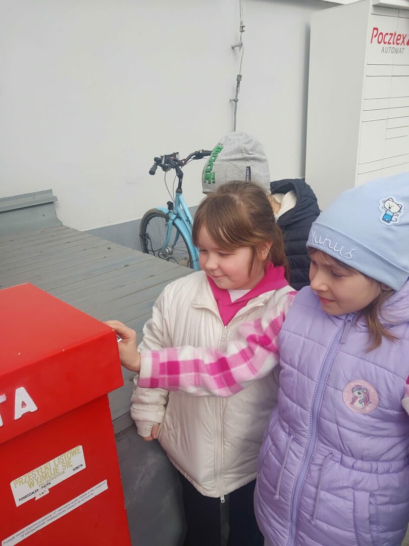 Podczas wizyty uczniowie mieli także okazję poznać pracę pań pracujących na poczcie 👩‍💼 oraz dowiedzieć się, jak wygląda droga listu do adresata 📦➡️📭