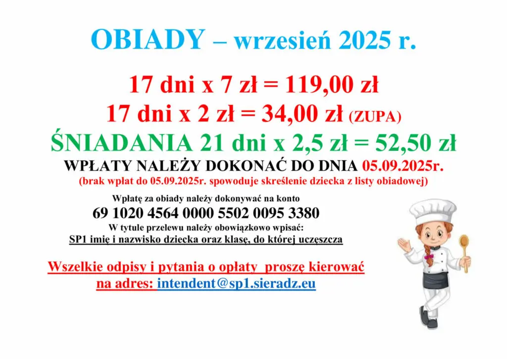 Obiady będą wydawane od 8 września 2025r. – poniedziałek