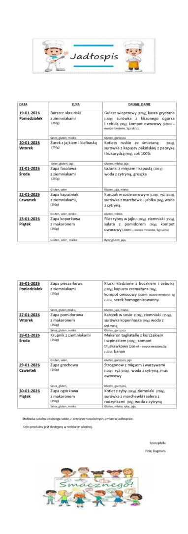 1. Złożona deklaracja nakłada obowiązek uiszczenia opłaty za obiady. Deklaracja do pobrania w sekretariacie lub jako załącznik tej wiadomości