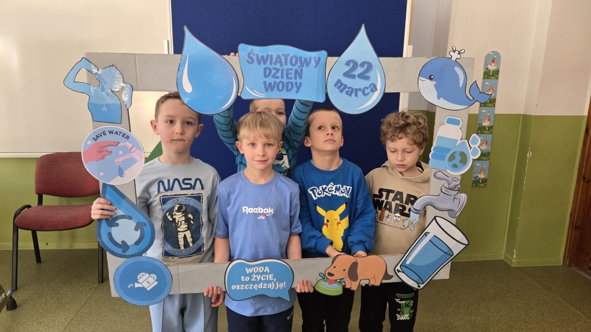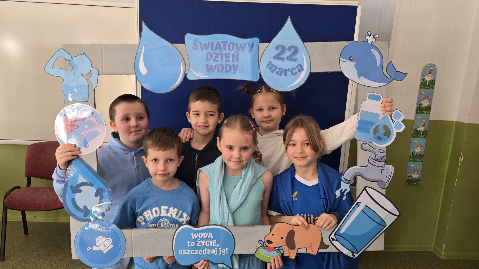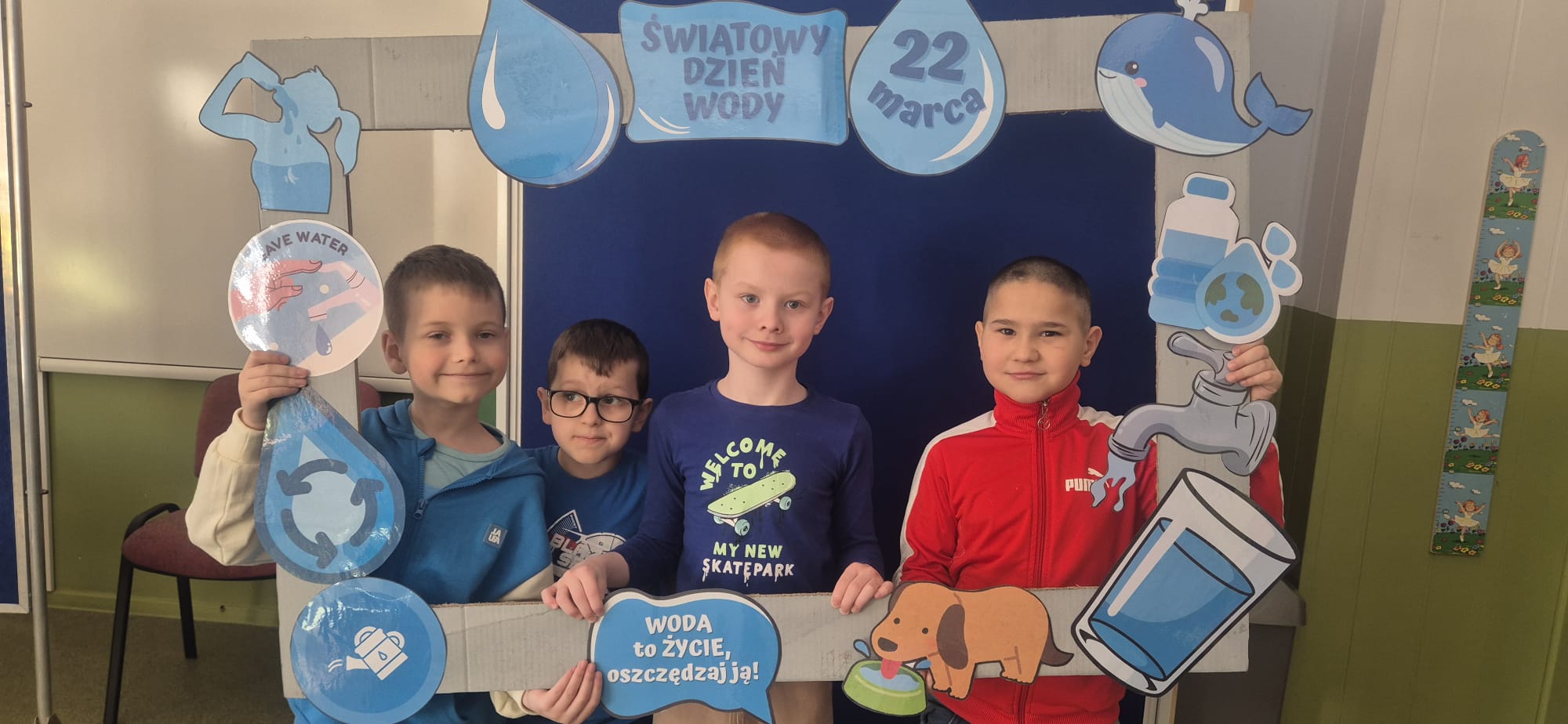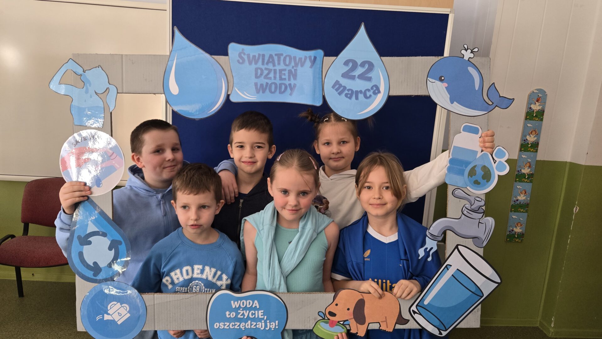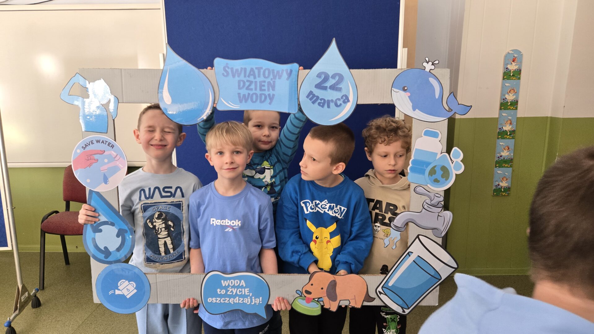 Nie zabrakło również pogadanki, podczas której rozmawialiśmy o tym, jak ważne jest oszczędzanie wody i dbanie o jej zasoby. Uczniowie dowiedzieli się, ile wody znajduje się na naszej planecie oraz jak niewielka jej część nadaje się do picia. To była cenna lekcja uświadamiająca, że każdy z nas ma wpływ na ochronę tego bezcennego skarbu.