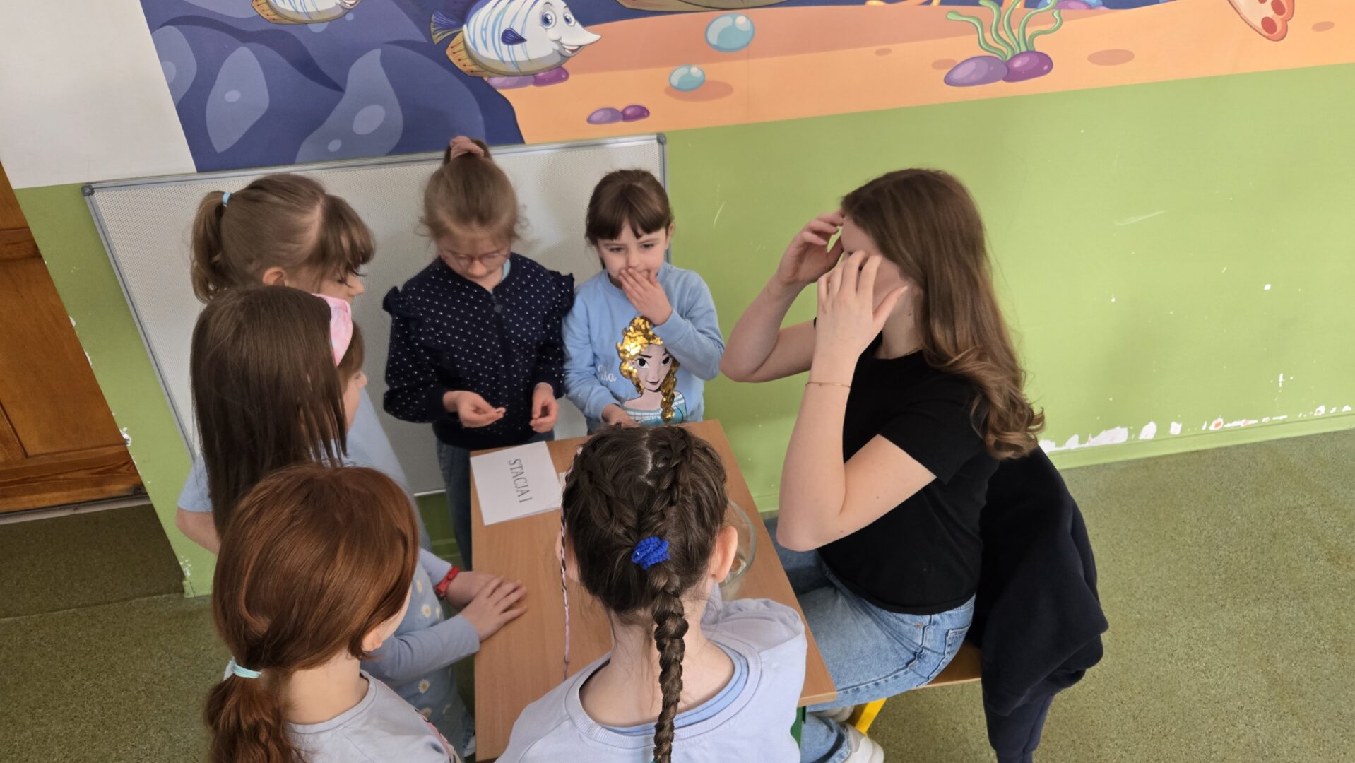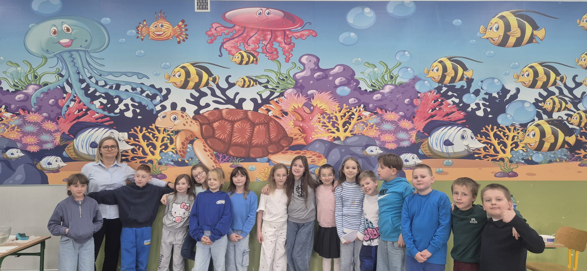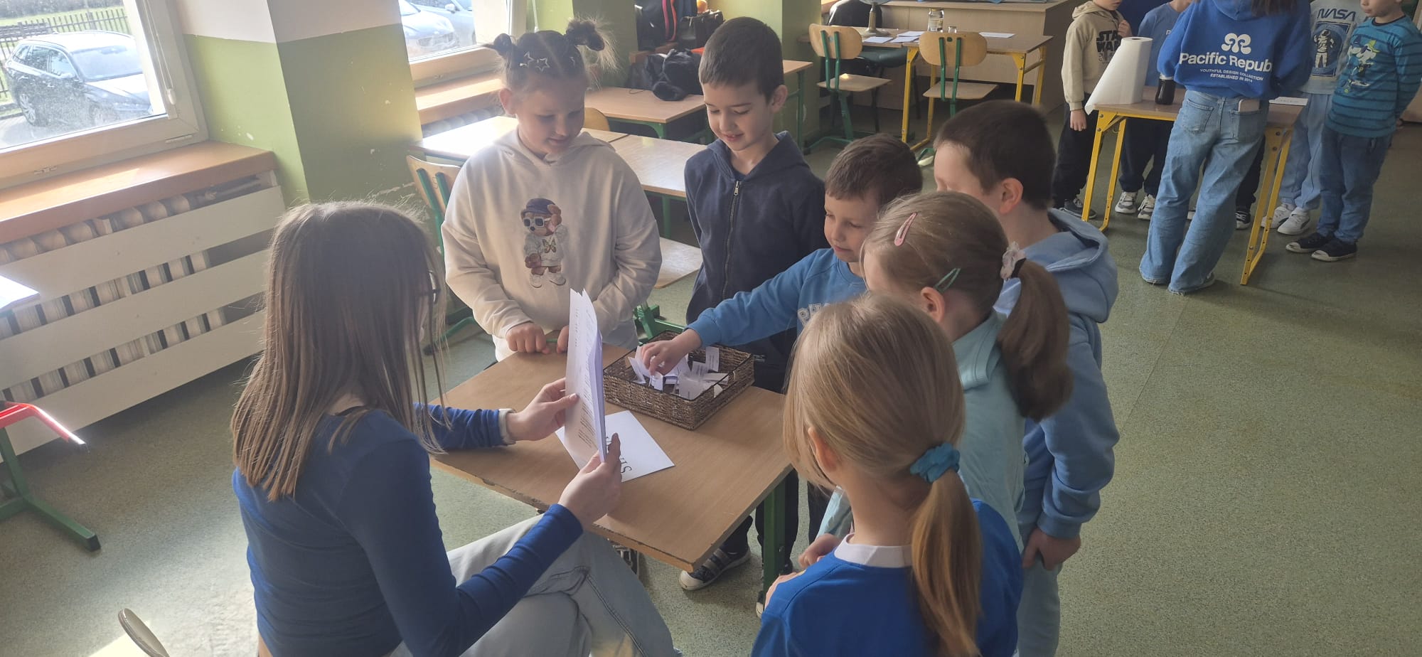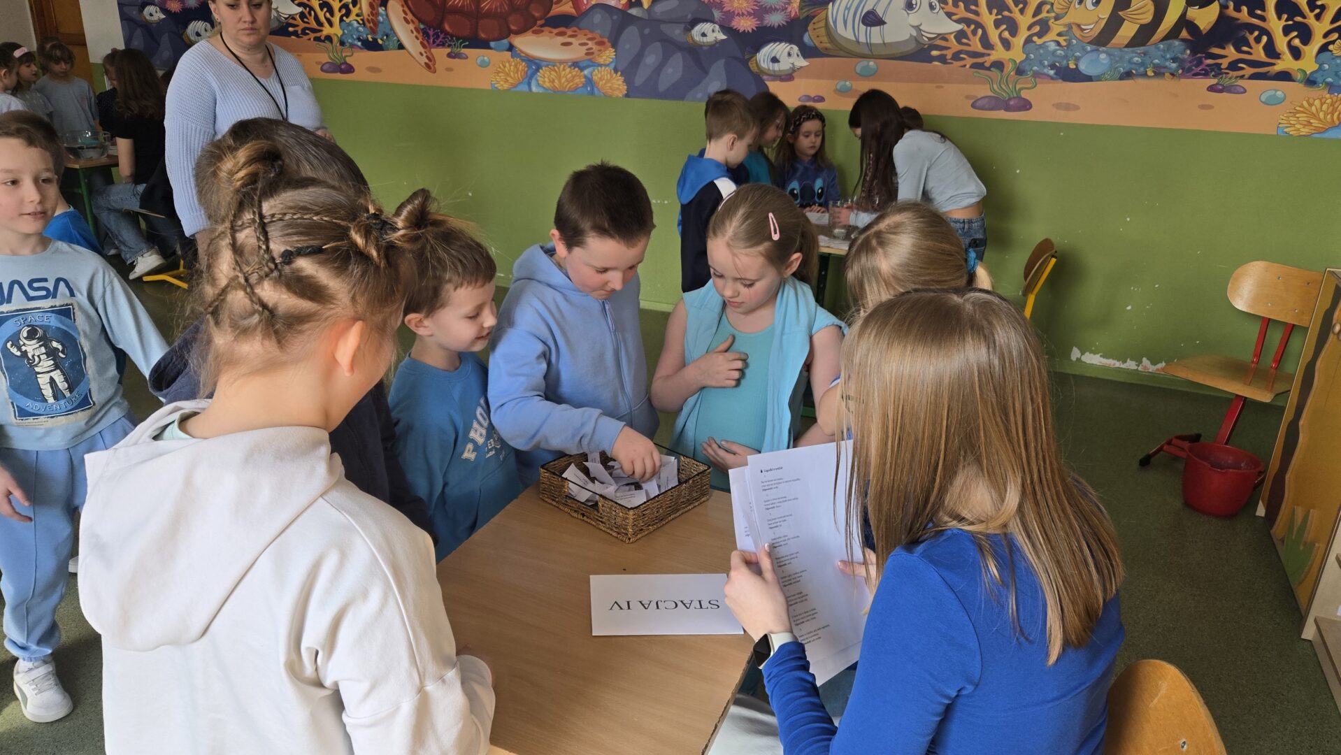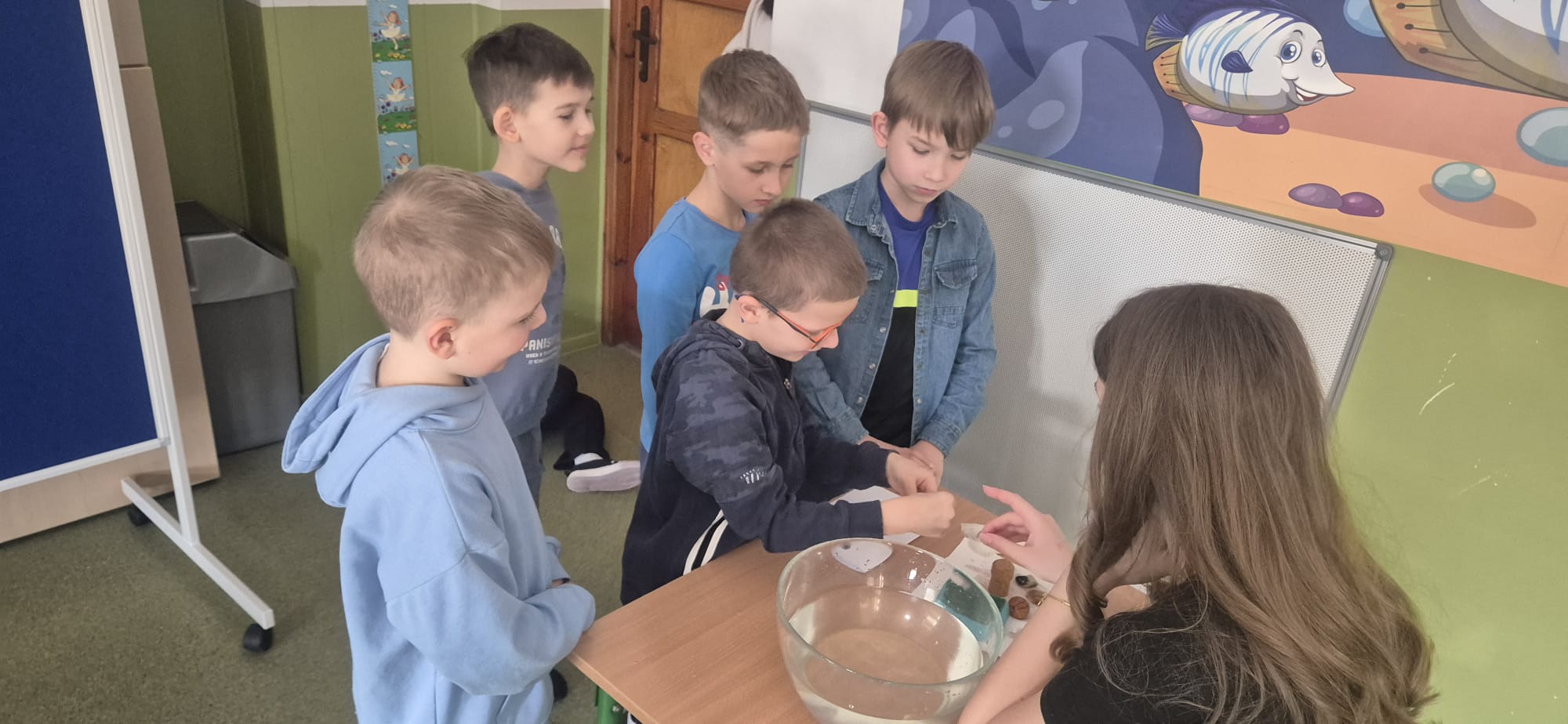 Nie zabrakło również pogadanki, podczas której rozmawialiśmy o tym, jak ważne jest oszczędzanie wody i dbanie o jej zasoby. Uczniowie dowiedzieli się, ile wody znajduje się na naszej planecie oraz jak niewielka jej część nadaje się do picia. To była cenna lekcja uświadamiająca, że każdy z nas ma wpływ na ochronę tego bezcennego skarbu.