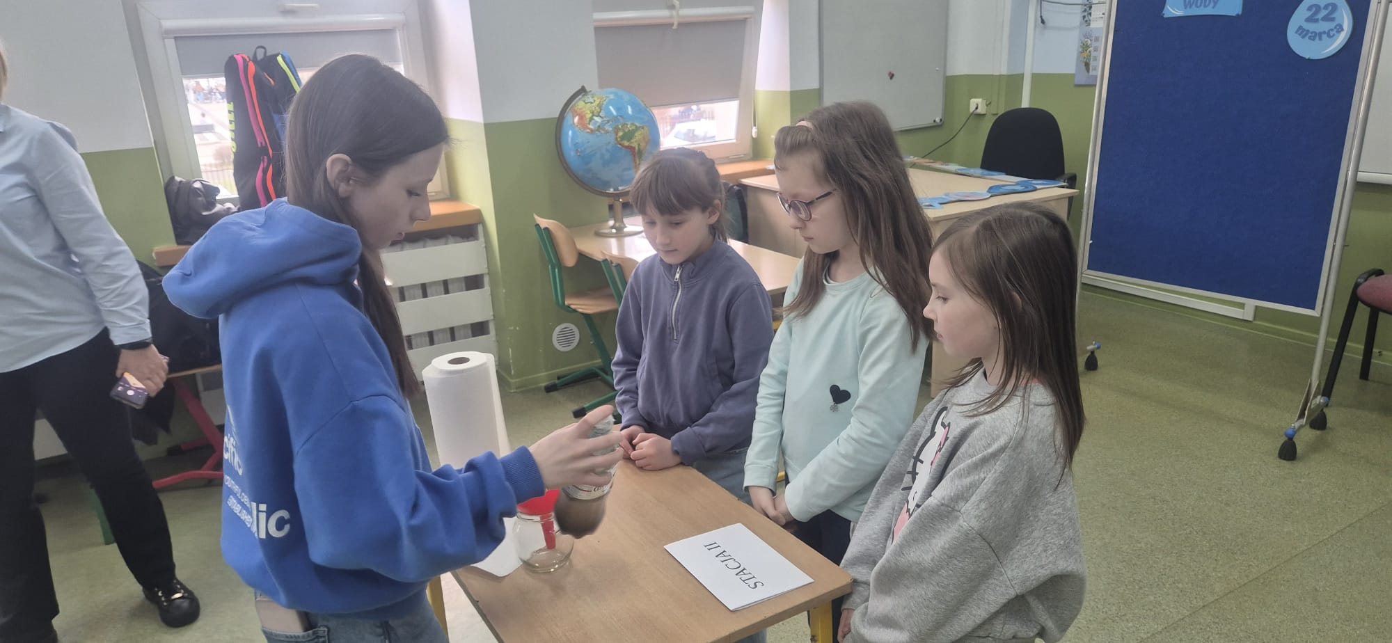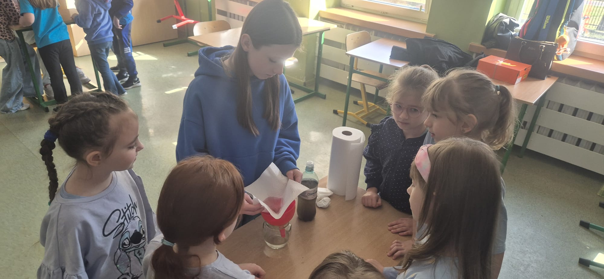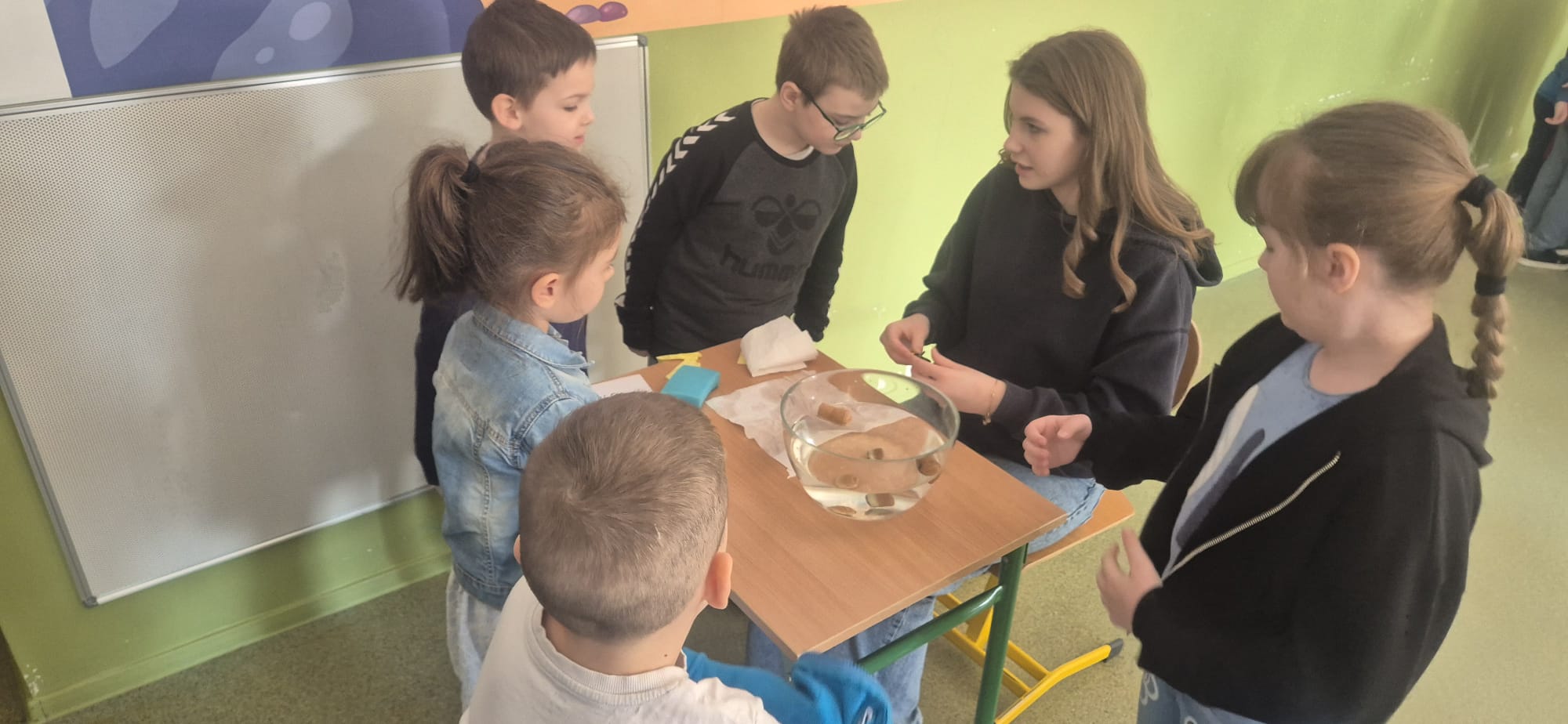 Dzisiejszy dzień był pełen ciekawych aktywności i refleksji nad tym, jak ważną rolę w naszym życiu odgrywa woda. Uczniowie mieli okazję uczestniczyć w interesujących doświadczeniach, które pozwoliły im lepiej zrozumieć jej właściwości oraz znaczenie w przyrodzie.