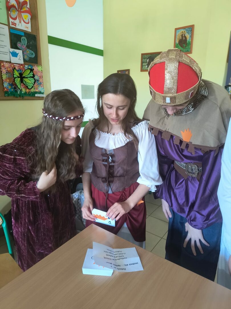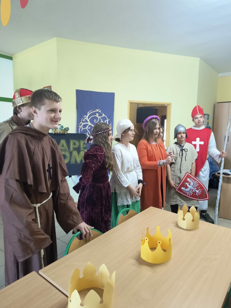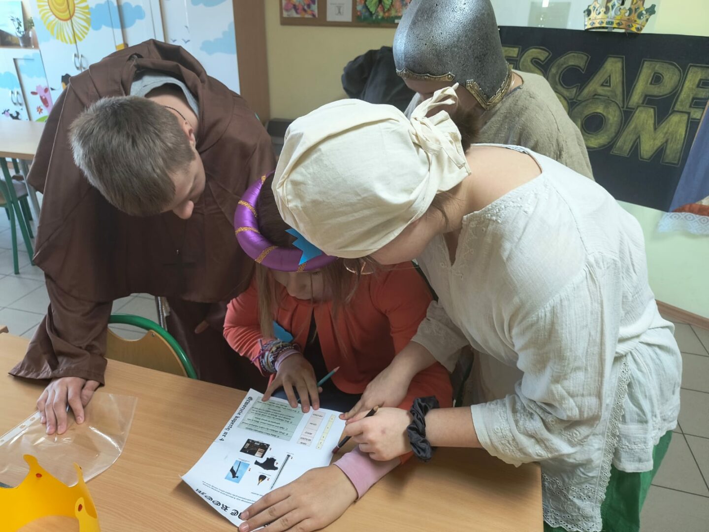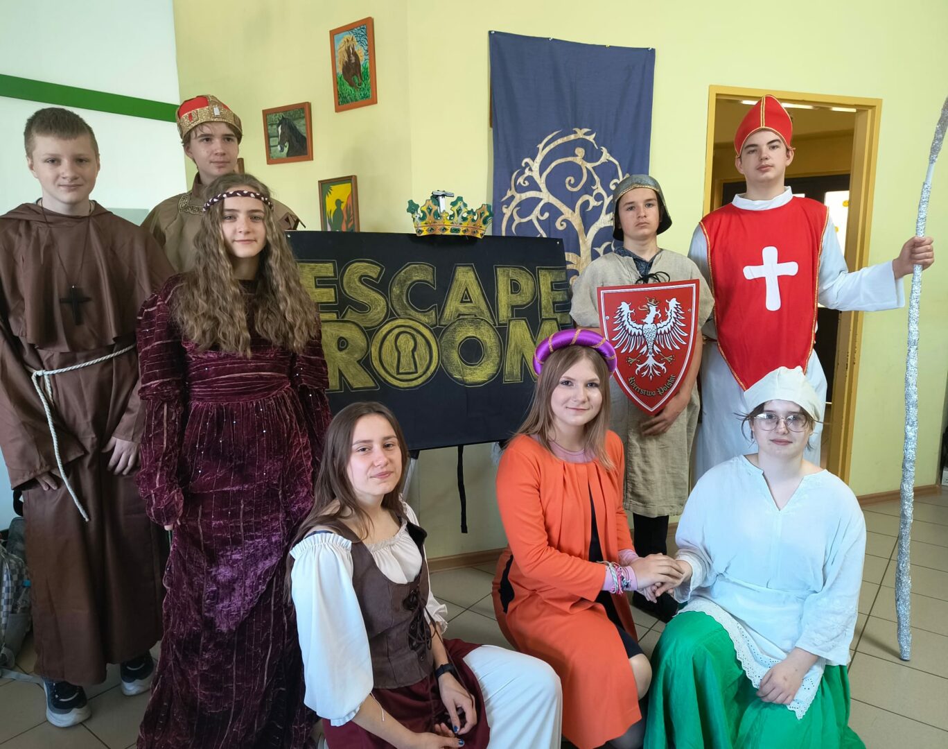 28 kwietnia 2025 r. zostało zrealizowane ostatnie zadanie z projektu „1000-lecie Królestwa Polskiego” – szkolny ESCAPE ROOM. Udział w nim wzięły grupy, w skład których wchodzili uczniowie i uczennice klas starszych. Mieli oni odnaleźć koperty ze wskazówkami dotyczącymi miejsca ukrycia zadań do wykonania. Drużyny były przebrane w średniowieczne stroje. Rywalizacja była zacięta. Uczniowie poradzili sobie z różnymi zagadkami nt. króla Bolesława Chrobrego i jego czasów. Drużyny wykazały się też twórczością poetycką, układając rymowanki o władcy.