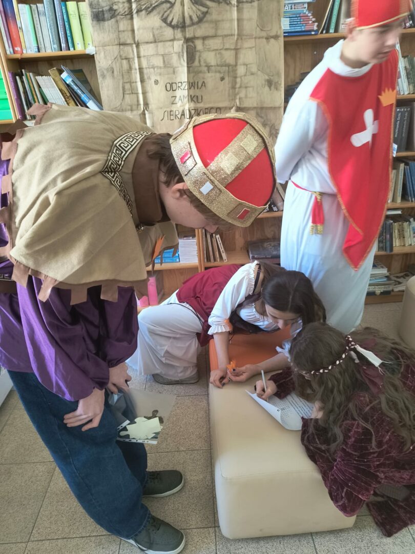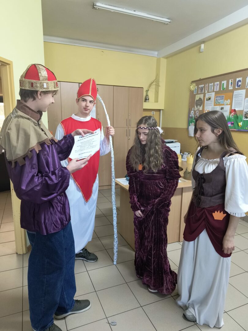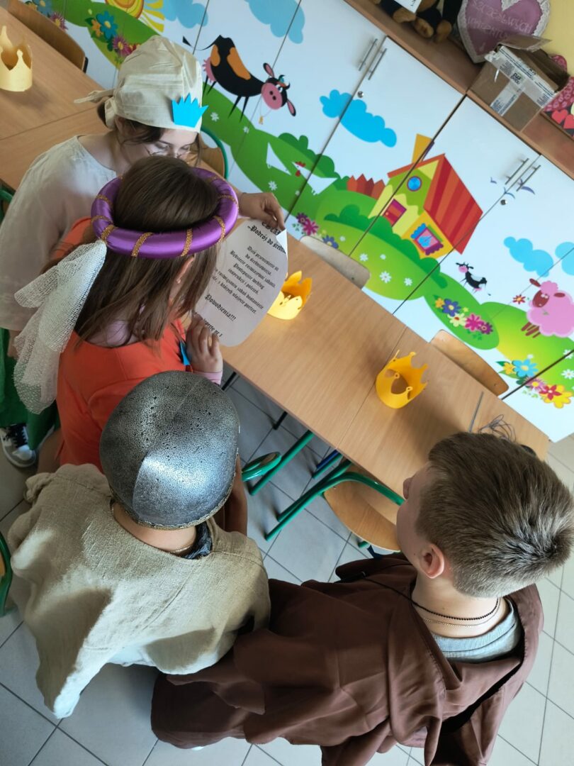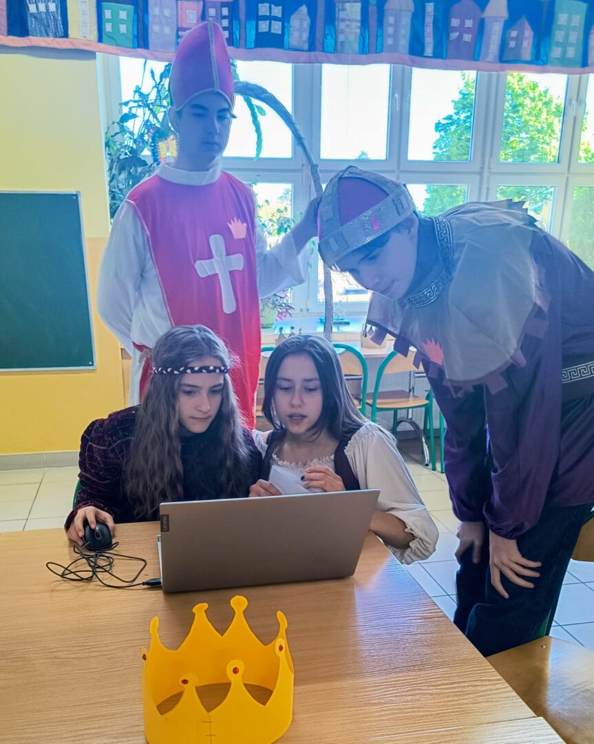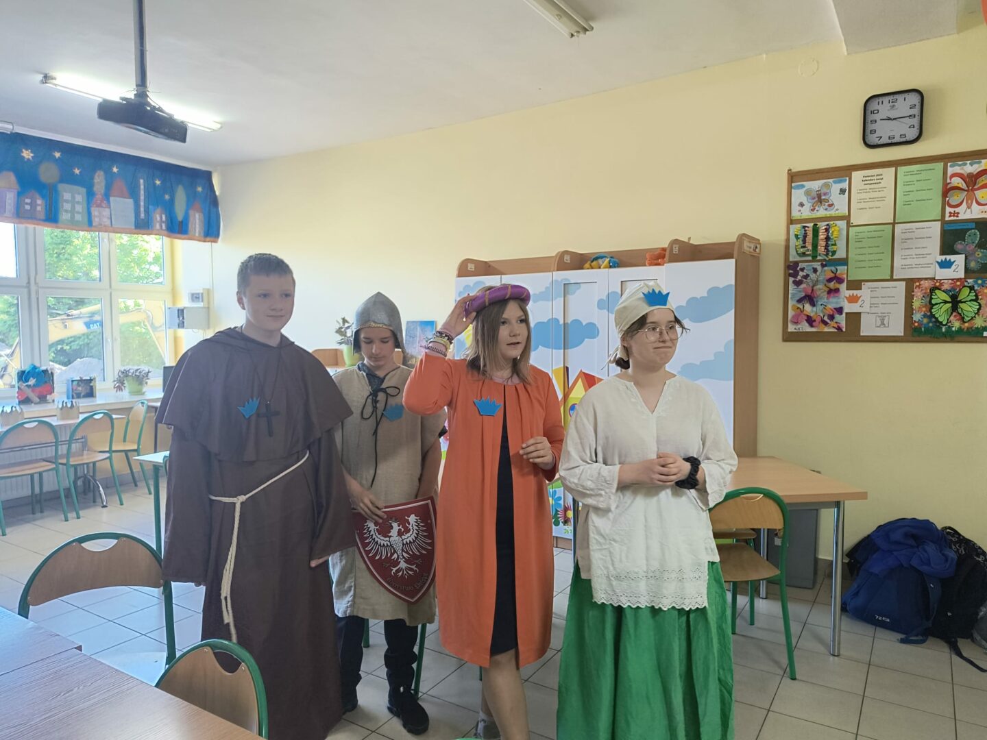 28 kwietnia 2025 r. zostało zrealizowane ostatnie zadanie z projektu „1000-lecie Królestwa Polskiego” – szkolny ESCAPE ROOM. Udział w nim wzięły grupy, w skład których wchodzili uczniowie i uczennice klas starszych. Mieli oni odnaleźć koperty ze wskazówkami dotyczącymi miejsca ukrycia zadań do wykonania. Drużyny były przebrane w średniowieczne stroje. Rywalizacja była zacięta. Uczniowie poradzili sobie z różnymi zagadkami nt. króla Bolesława Chrobrego i jego czasów. Drużyny wykazały się też twórczością poetycką, układając rymowanki o władcy.