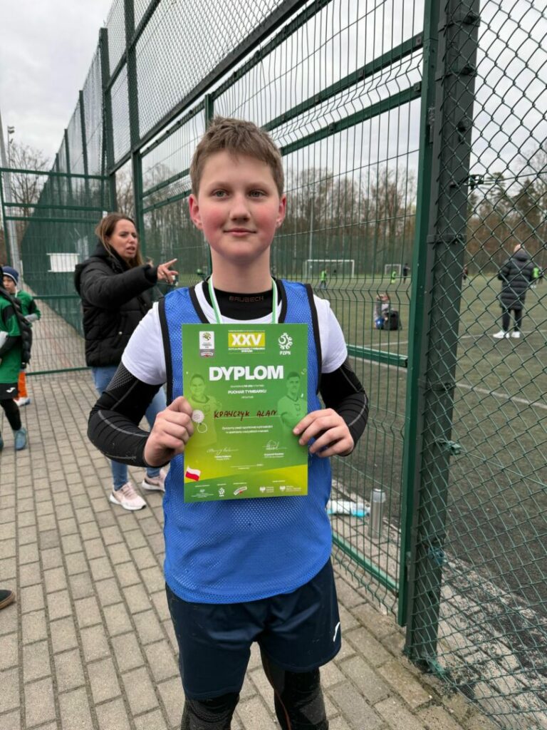 W dniu dzisiejszym odbył się Turniej o Puchar Tymbarku w kategorii U12. Naszą szkołę reprezentowali uczniowie kl. 5 b: Ignacy Bilski, Zakhar Habelchenko, Przemysław Grzesiak, Alan Krawczyk, Dawid Krzysztofiak, Adrian Nowak, Maksymilian Sosin, Antoni Wojciechowski oraz uczeń kl. 4 a Filip Bekowski.