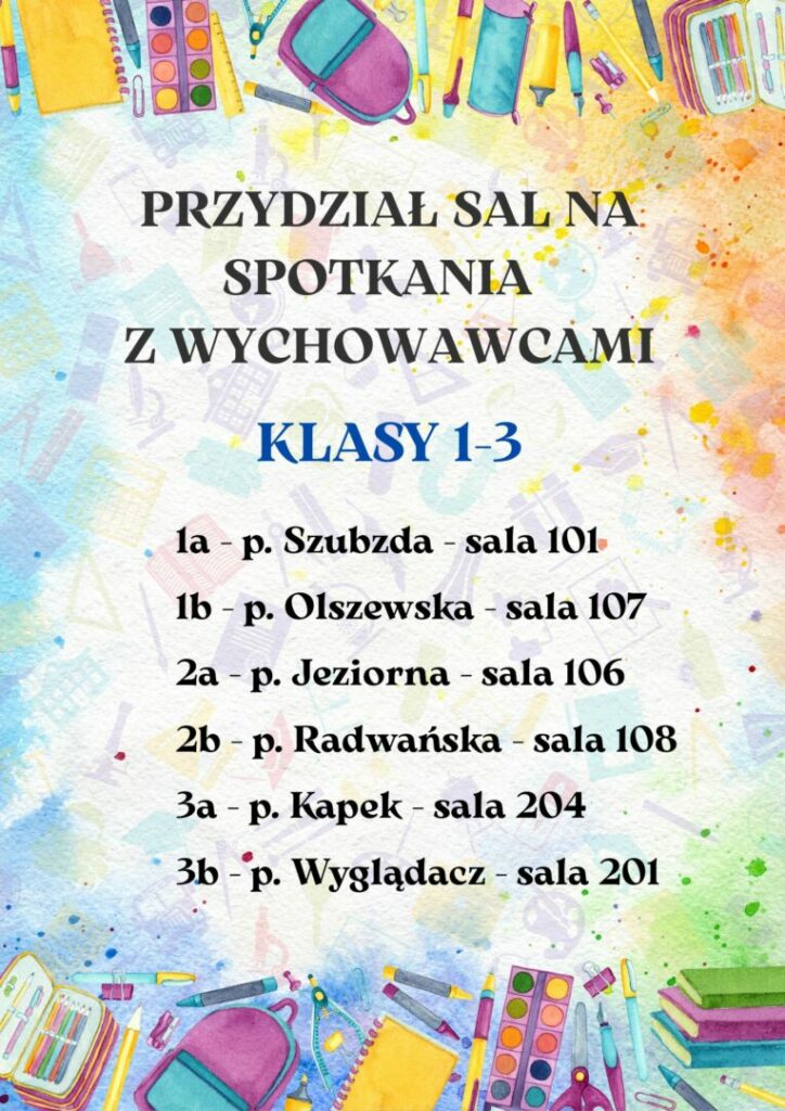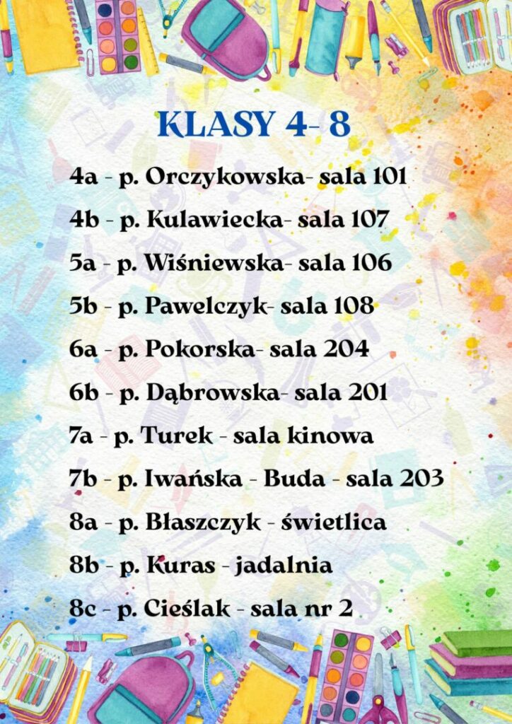 Uczniów klas pierwszych zapraszamy wyjątkowo już o 8:15 do sal lekcyjnych: