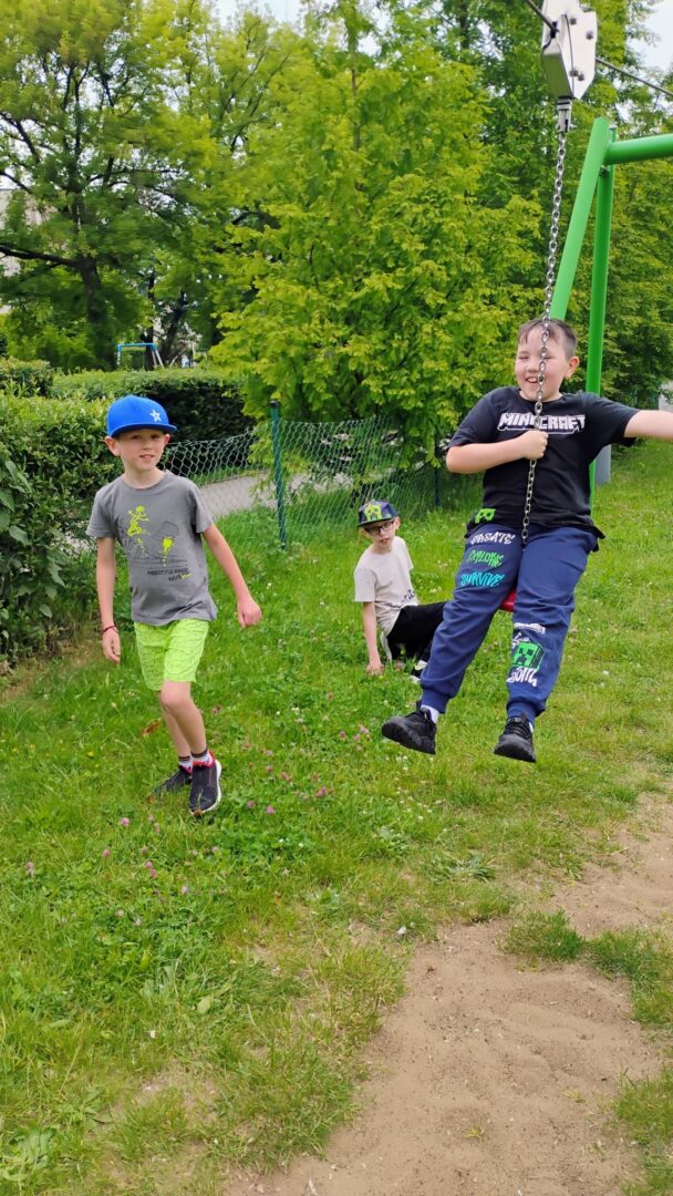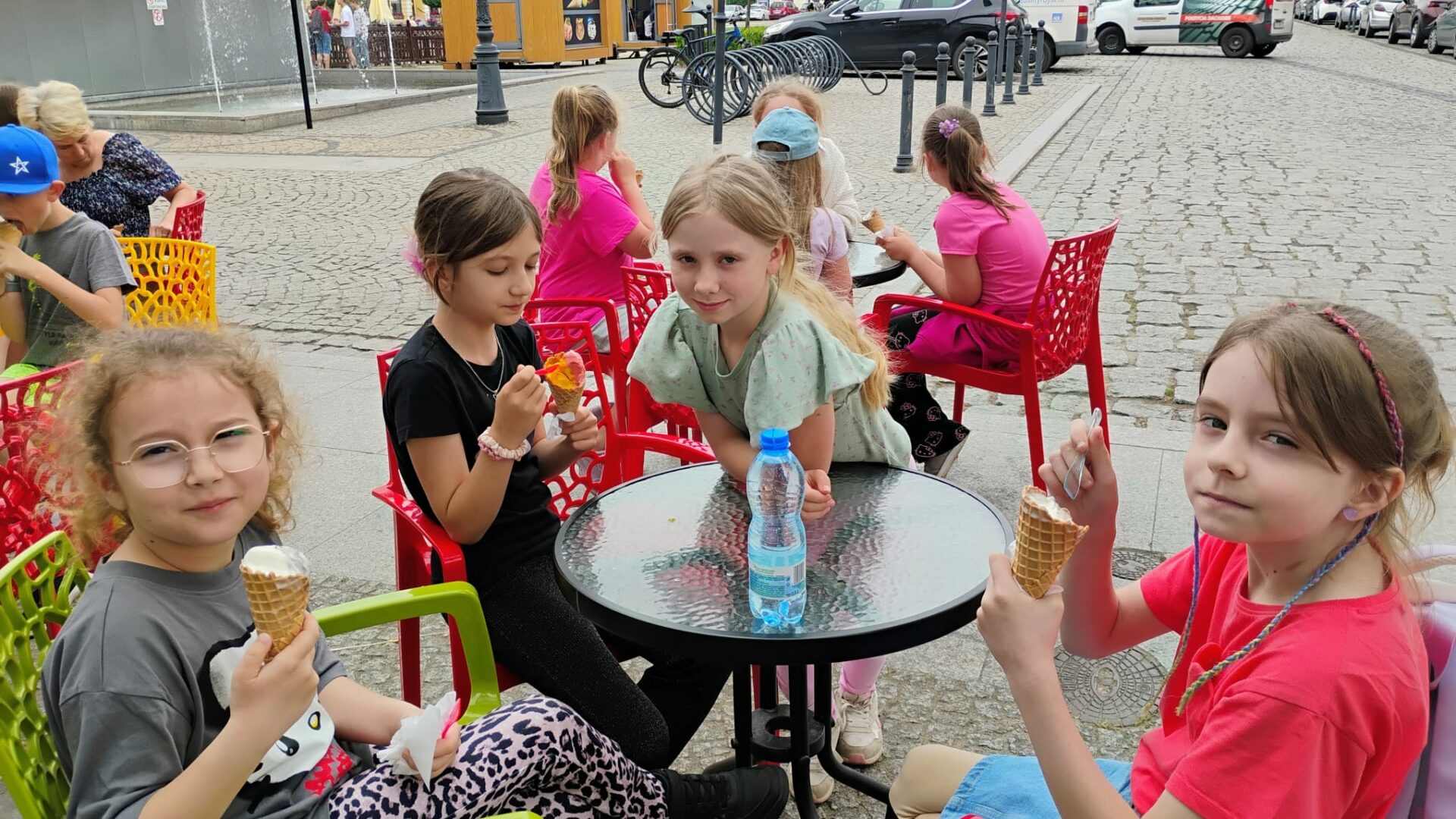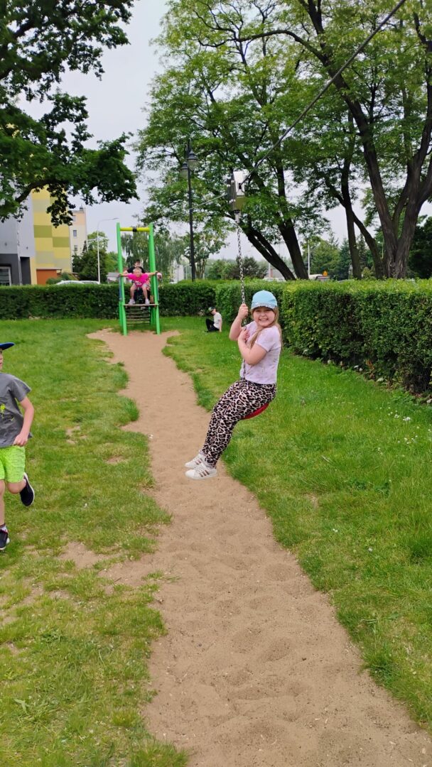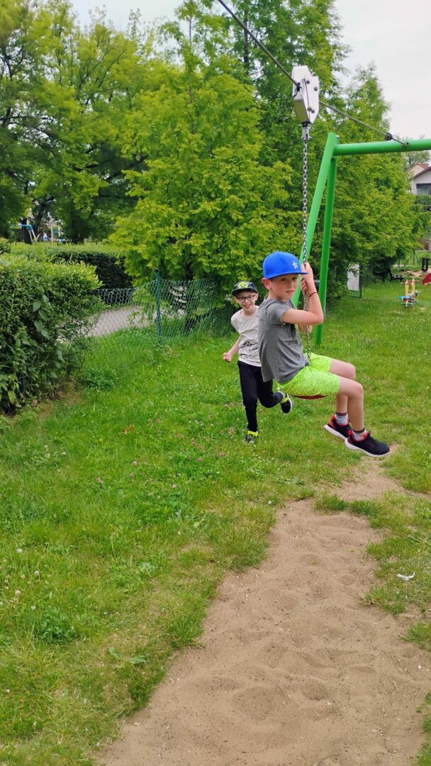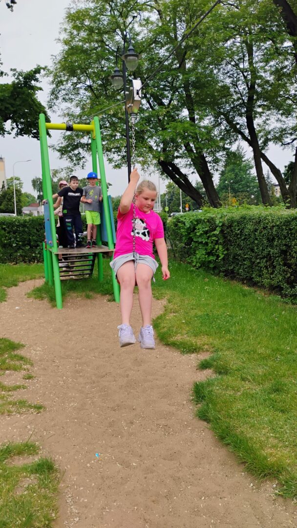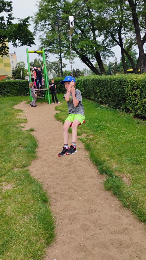 Po literackiej uczcie uczniowie udali się na zasłużony relaks – odwiedzili pobliską lodziarnię, gdzie każdy mógł delektować się pysznymi lodami 🍦. Zwieńczeniem dnia była zabawa na placu zabaw, gdzie dzieci mogły spożytkować energię, integrując się i spędzając czas na świeżym powietrzu.