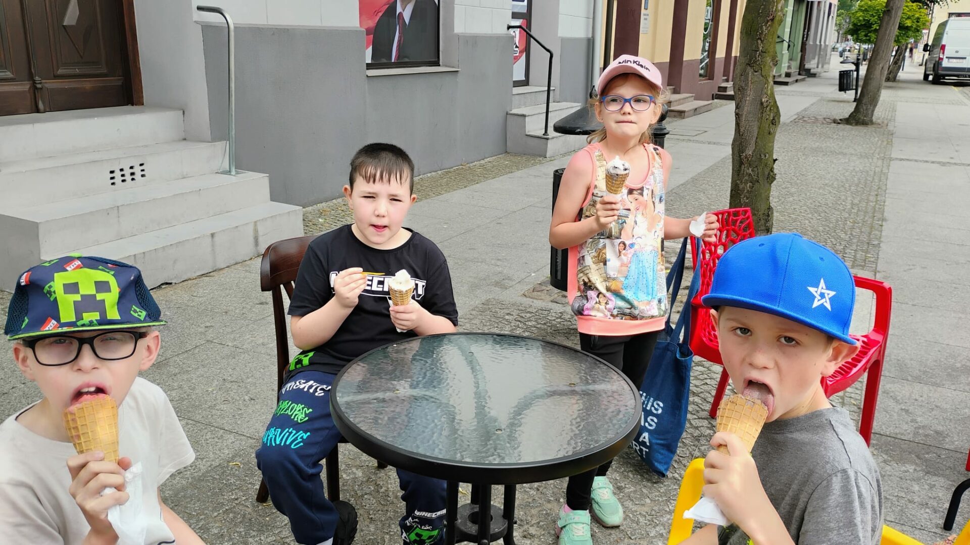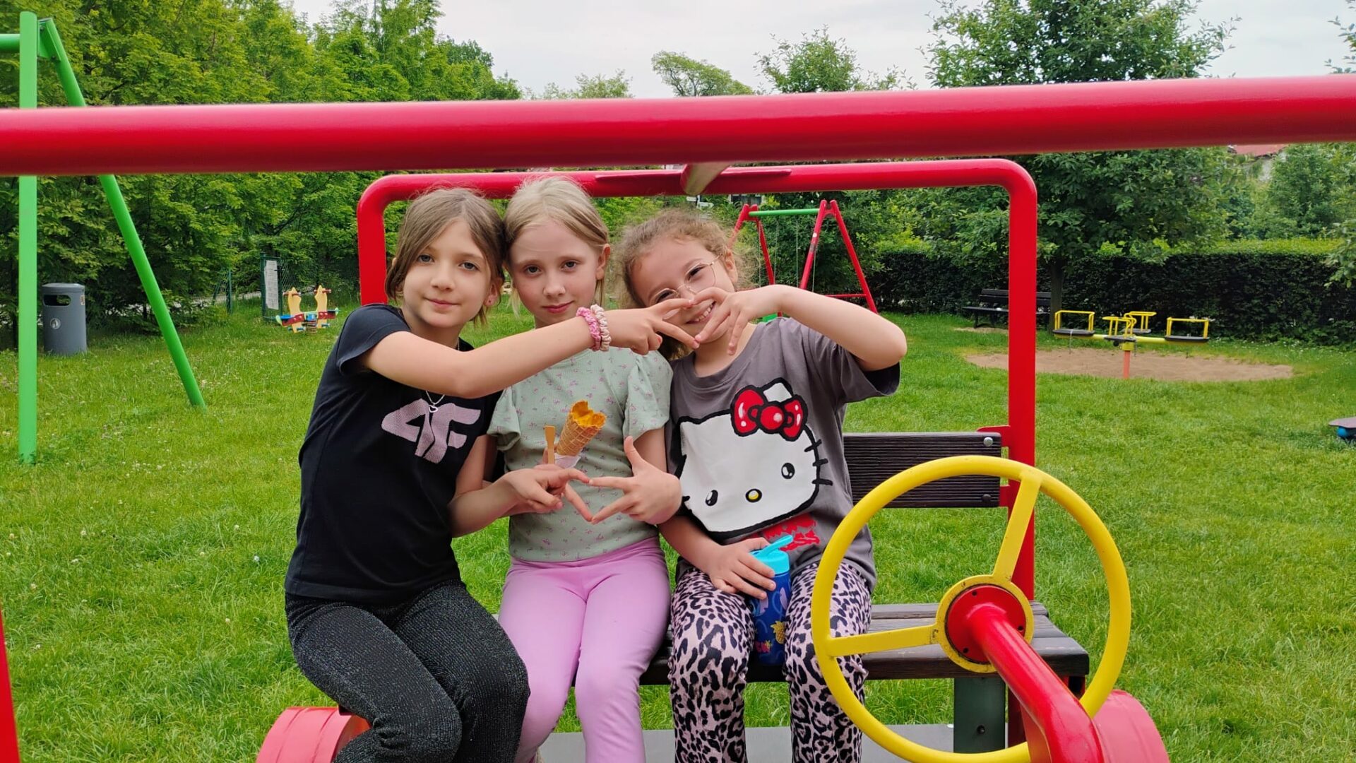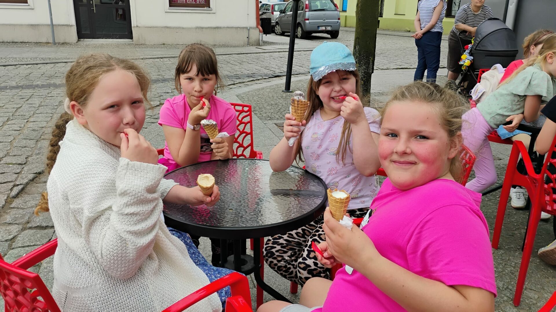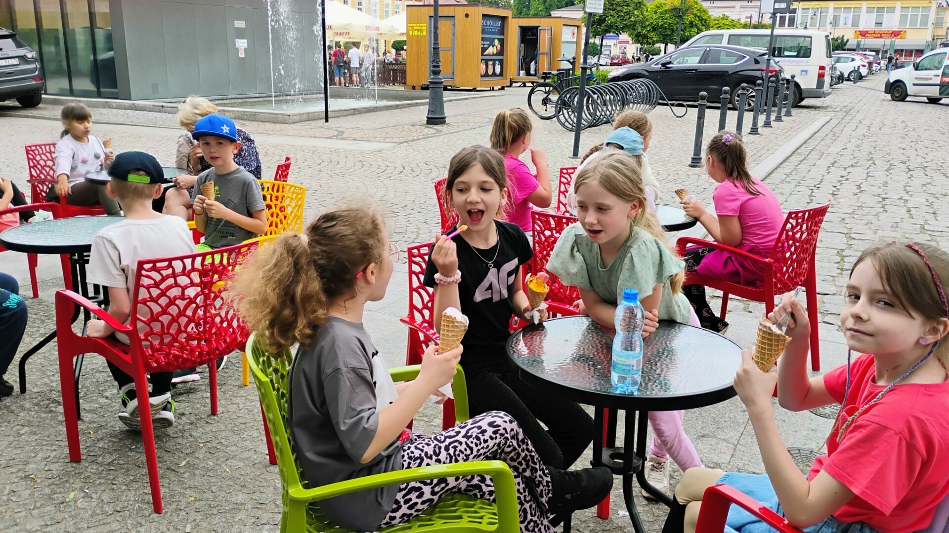 Po literackiej uczcie uczniowie udali się na zasłużony relaks – odwiedzili pobliską lodziarnię, gdzie każdy mógł delektować się pysznymi lodami 🍦. Zwieńczeniem dnia była zabawa na placu zabaw, gdzie dzieci mogły spożytkować energię, integrując się i spędzając czas na świeżym powietrzu.